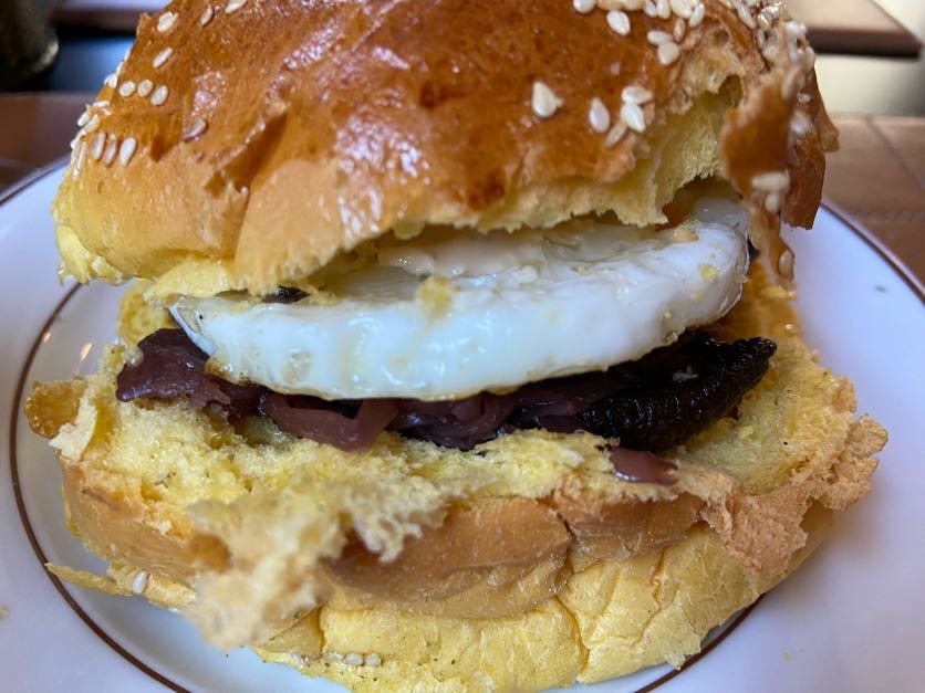 昨日午餐,黃色Sangria(白葡萄酒+百香果汁等)、素食三明治+素食pastry