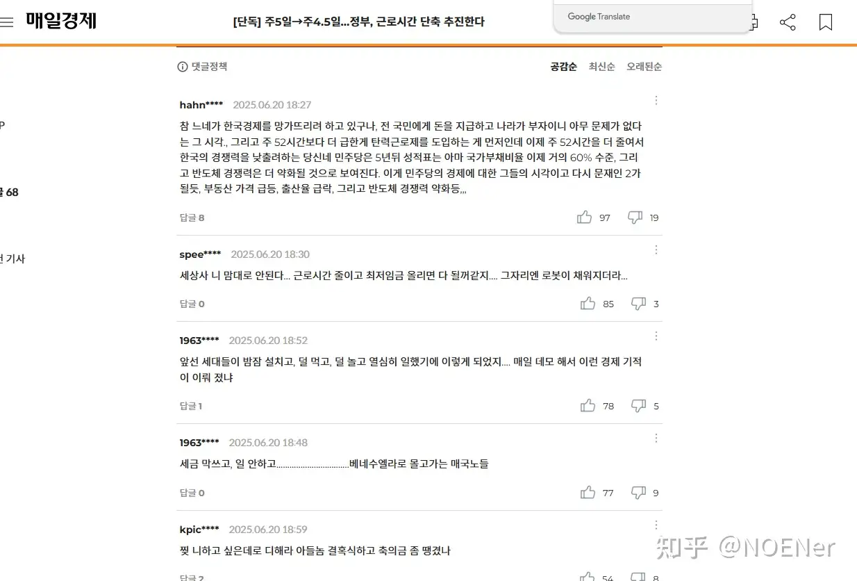 知乎上的人替韩国人高兴的,但是好像韩国人不怎么开心,这个新闻下面韩国人大部分全是骂的,有个社区最多赞的是:什么时候把无偿加班解决一下再缩短工时。果然老中这些习惯都是学资本主义的 毕竟减少时间=减少工资=减少竞争力,还是知乎好可以替人家赢,winwinwin