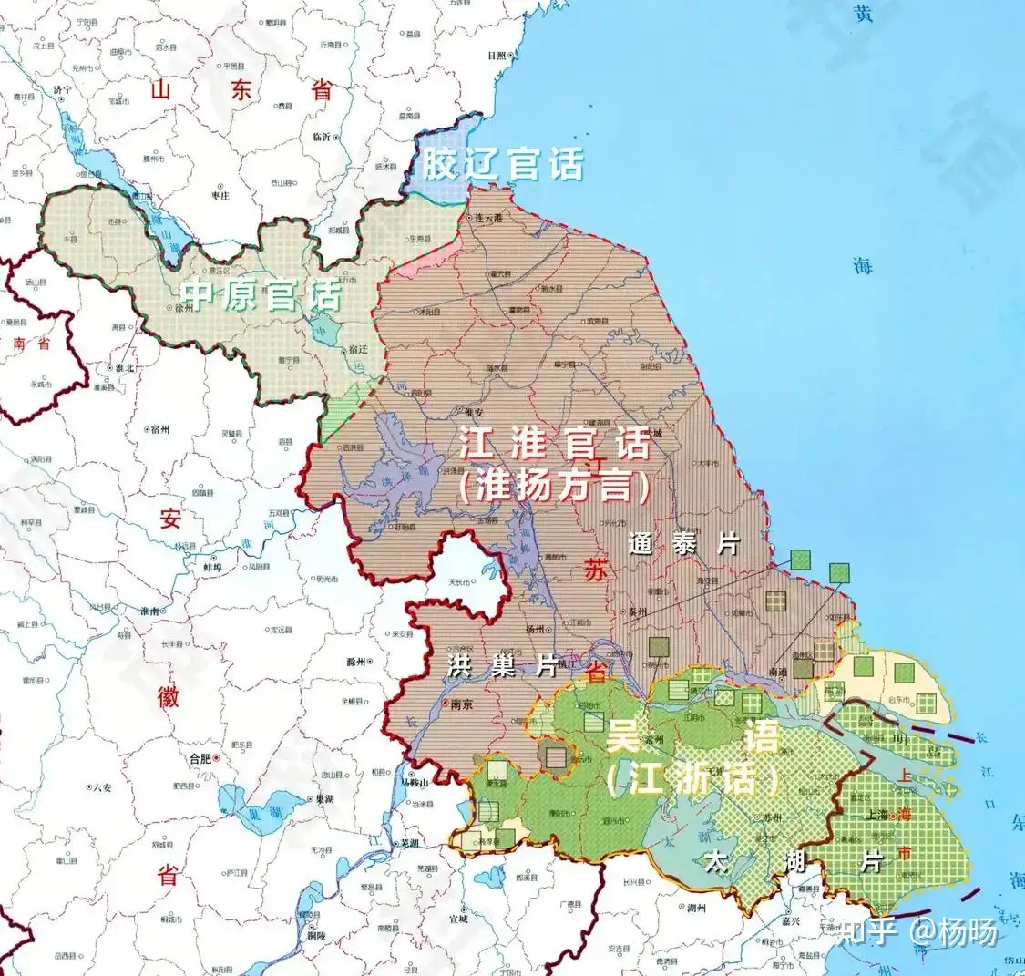 这种情况不光体现在安徽,安徽只是将这种特征放大了。实际上几乎所有的省份都是这样,被拆分重组的。 少数民族的蒙古被拆成好几个部分,新疆东北河北青海都有分布,看似本部的内蒙古又掺入了很多非蒙古族地区。藏区被拆成西藏、青海两个大区,藏区在四川和云南部分也有分布,四川的一半都是藏区,还故意在青海省迁入蒙古族、汉族和回族几个民族不让一家独大。西北被拆成陕甘宁,东北分为辽吉黑。其实像这种由于区域太大而被拆分的大区还可以理解,但有一些明明不大却还是要分就…… 江南省本来大都是说吴语的江浙民系的江浙人,都是说一种语言血统接近的民系。但拆分成江苏、浙江、安徽三个大区。 其中江苏省,南部才是江浙人,江苏北部(苏北)是河南人山东人这类北方人。