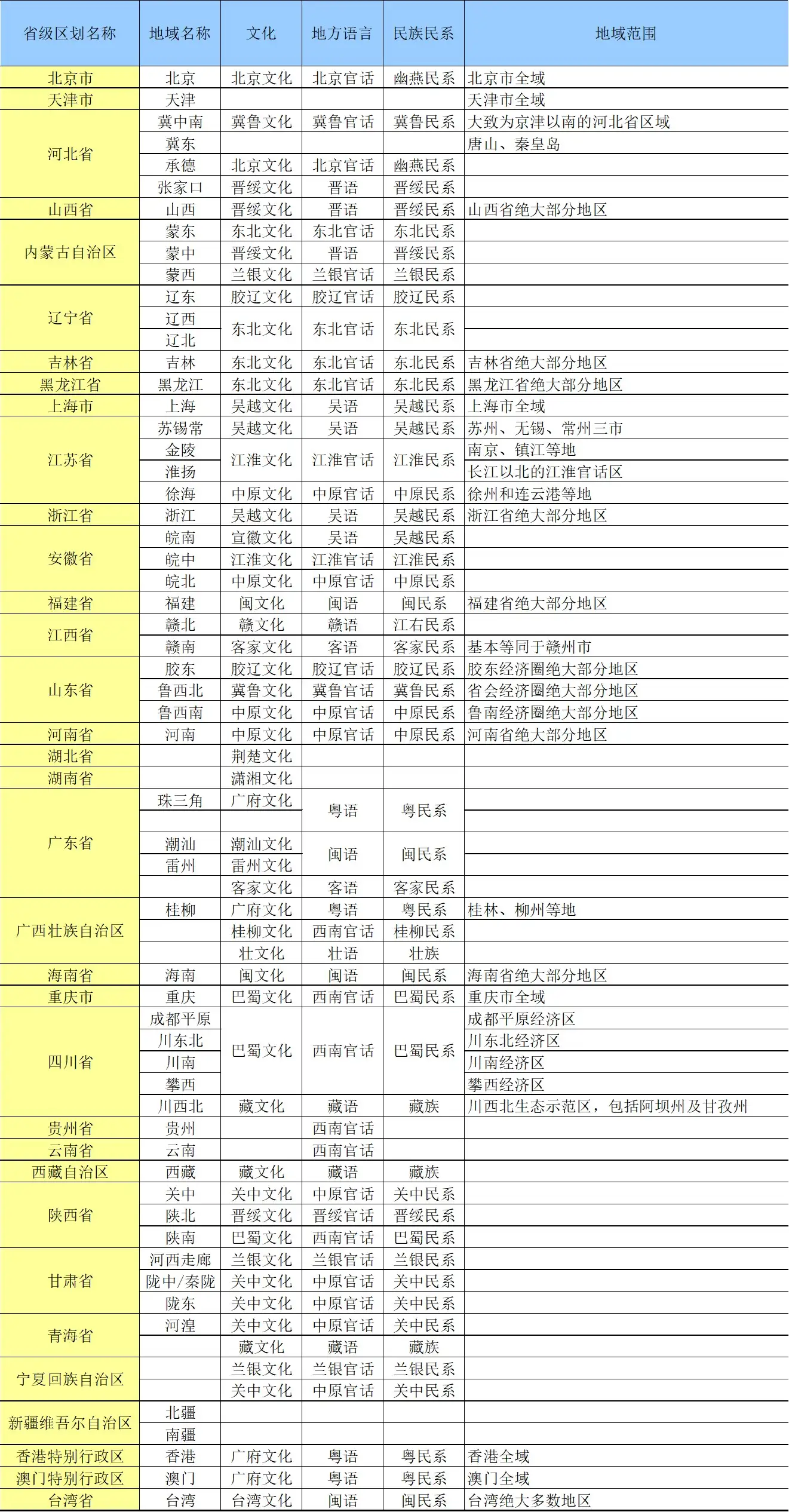 其他省份可能是我一时没想起来也可能是不满足上文条件,例如湖北可以分江淮巴蜀两湖三种文化出来,但实际上三种文化在湖北融合的较好区别已经不显著了