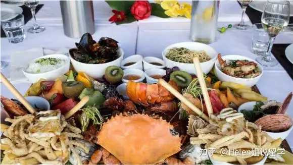午餐,对于澳大利亚人来讲,午饭是非常简单的,为了节省时间,他们的午饭有时候是一个派,有时候是汉堡或者三文治搭配水果就可以了。他们是没有中午休息这一说法,一般午饭后,他们就马上开始工作。在澳大利亚基本上街道上都可以看到很多快餐店,像披萨店,肯德基这些。