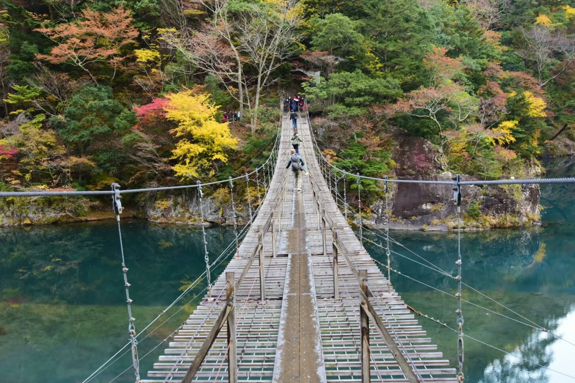 賞楓地點推薦【1】須又峽夢之吊橋 須又峽位於靜岡縣,是一個向上游延伸約20公里的山谷與瀑布,以紅葉聞名。在秋天踏上須又峽的夢之吊橋,更可以被色彩斑斕的森林和湖水圍繞,絕對是人間秘境!