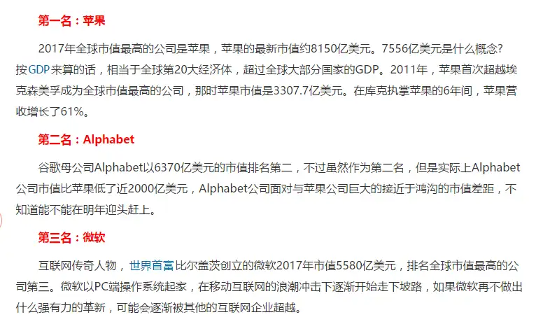 全世界市值排行榜第一公司,人人都知道是苹果公司。第二很少有人知道,大家知道微软,谷歌,Facebook等一些公司,如果不是特别关注根本不知道他们排名多少