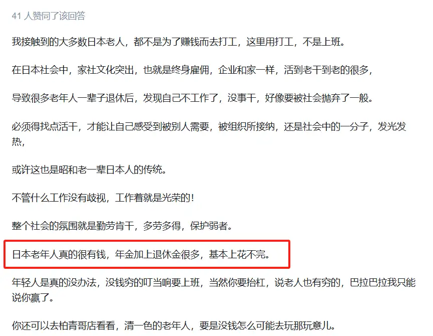 回到你的问题,为啥老了还得干活,据我了解到的信息,日本虽然医疗保障高,但退休金除了大手公司,普通人都发得不多,一个月几万日元说实话也不太够生活,所以还得找点自己能做的事。