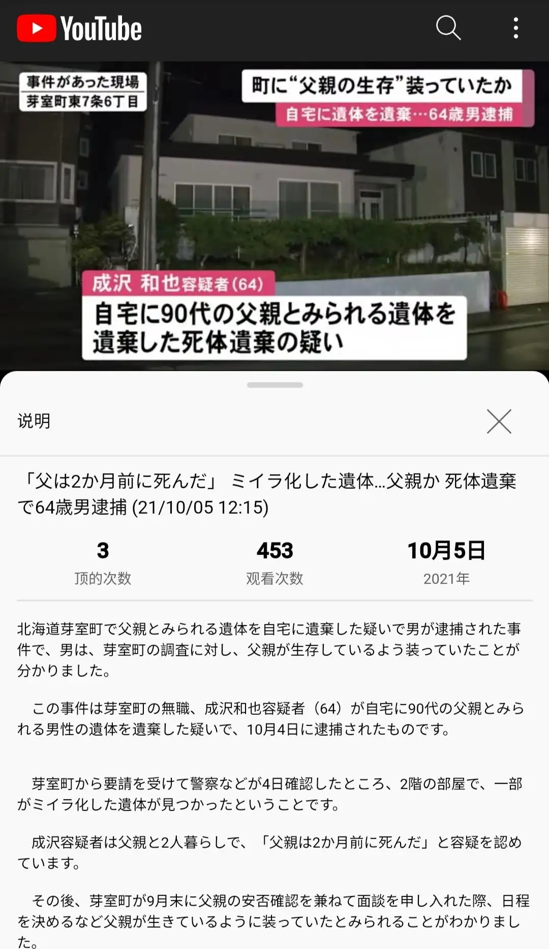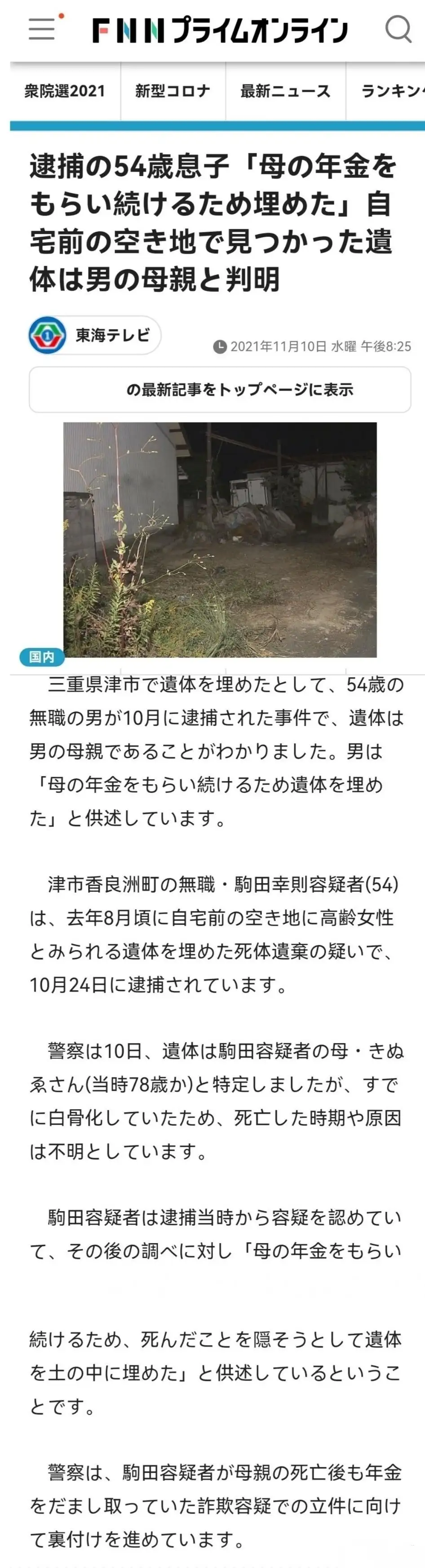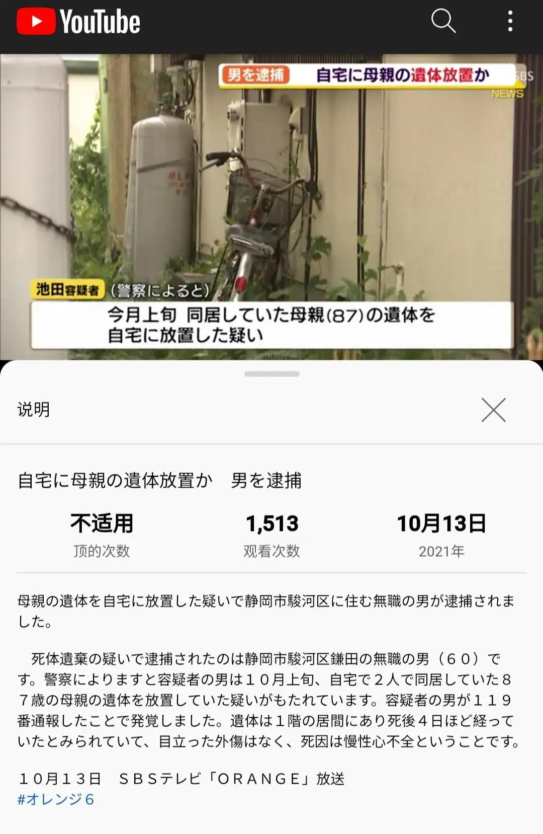 60岁自宅警备员,遗弃87岁母亲遗体。