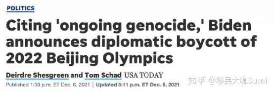 2021年12月6日,美国政府宣布不会派遣正式代表团参加2022年北京冬奥会和残奥会。