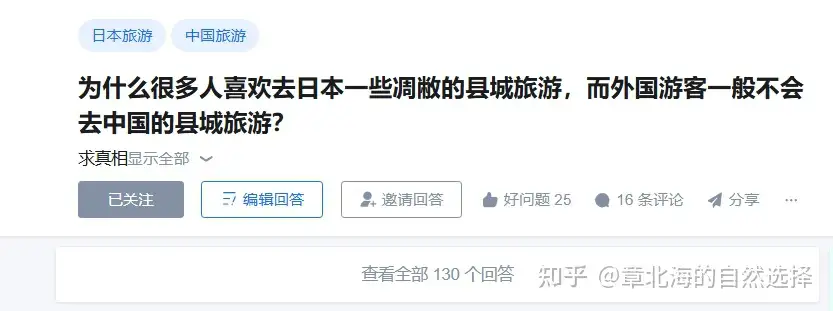 (轉載知乎)为什么很多华人喜欢去日本一些凋敝的县城旅游而日本人一般不会去中国的县城旅游? |