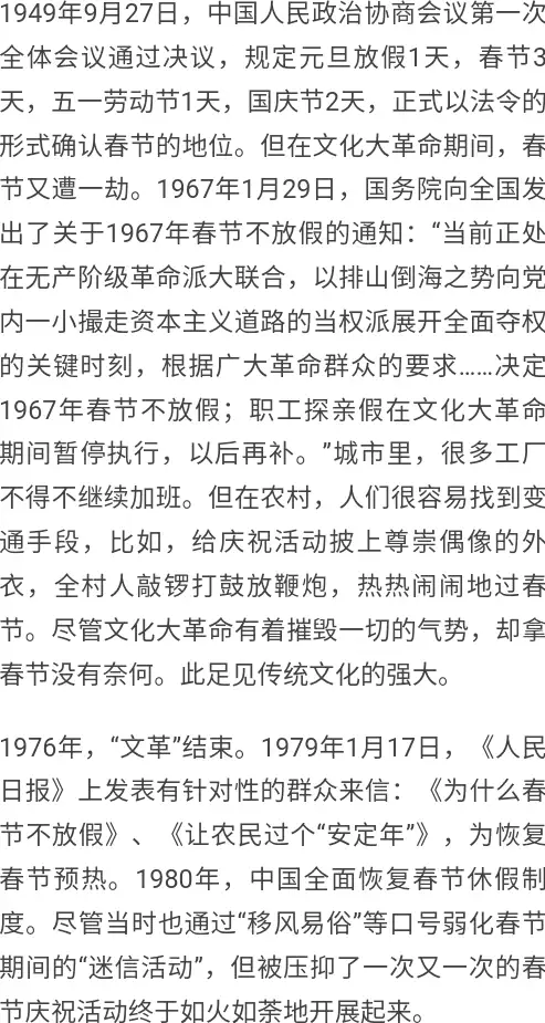 1967年-1979年期间全国各地的各个企事业单位和生产队每年在春节时都是不放假的。——这是原载于《海南日报》的文章《坚硬的春节》中说的。