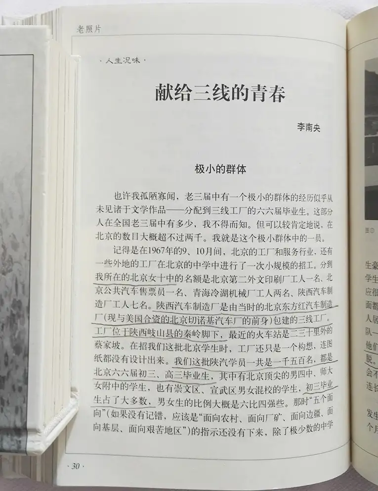 李锐的女儿李南央发表在杂志式丛书《老照片》第48辑上的《献给“三线”的青春》中,曾这样忆述六、七十年代自己在陕西汽车制造厂