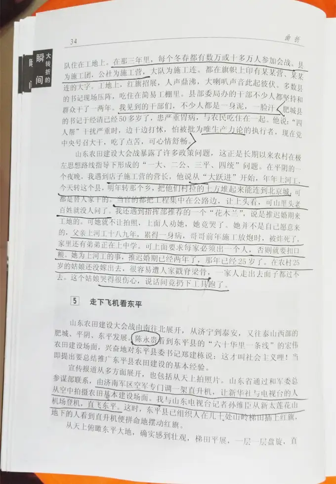 山东农田建设大会战暴露了许多政策问题,这正是长期以来农村形成的“一大、二公、三平、四统”问题。在平阴的一个夜晚,我遇到店子施工营的营长,他说从“大跃进