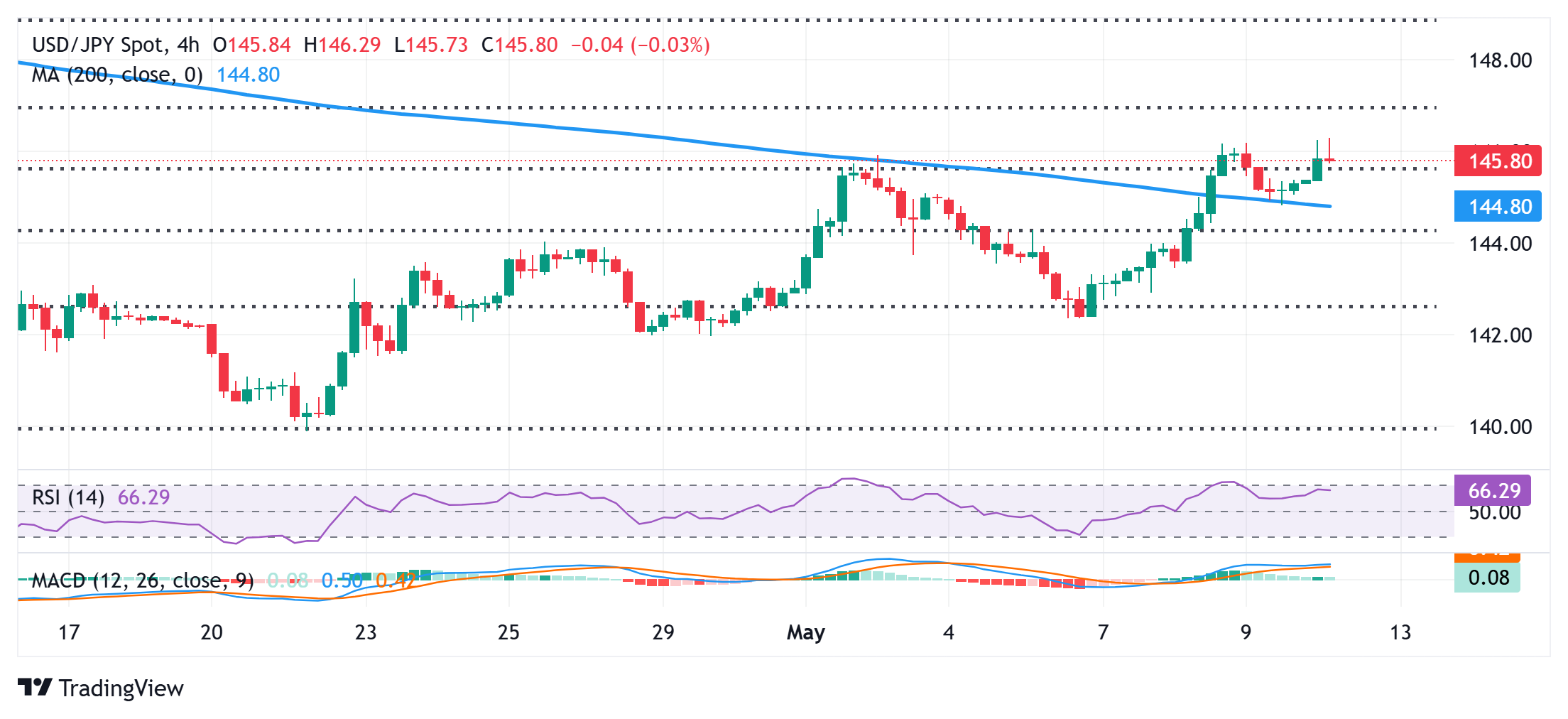 從技術角度來看,美元/日圓對現在似乎已經在3月-4月跌勢的50%斐波那契回撤位上找到了支撐。此外,日線圖上的振盪指標再次開始獲得正動能,並在小時圖上保持在看漲區域,表明現貨價格的阻力路徑向上。因此,向146.80-146.85區域的進一步上漲,代表61.8%斐波那契回撤位,看起來是一個明顯的可能性。緊隨其後的是147.00的整數關口,如果突破,將為進一步的短期升值走勢奠定基礎。 另一方面,145.55區域或50%水平似乎現在抑制著短期下行,若跌破該水平,美元/日圓可能加速下滑至145.00的心理關口。後者與4小時圖上的200期簡單移動平均線(SMA)重合,應作為一個關鍵點。若有效跌破,可能會引發一些技術性拋售,並將現貨價格拖至144.45區域附近的下一個相關支撐位,進而逼近144.00整數關口。