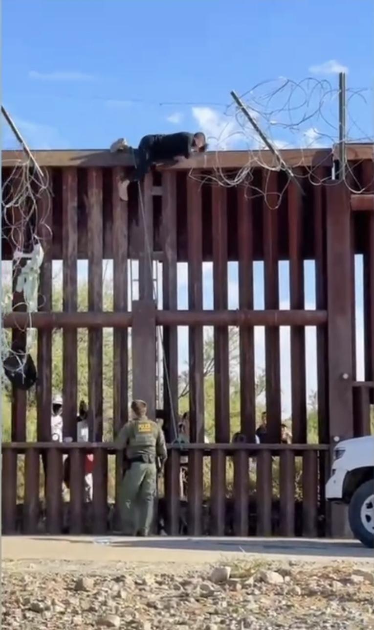 走線客正在翻越邊境墻,進入美國境內。(良哥提供)