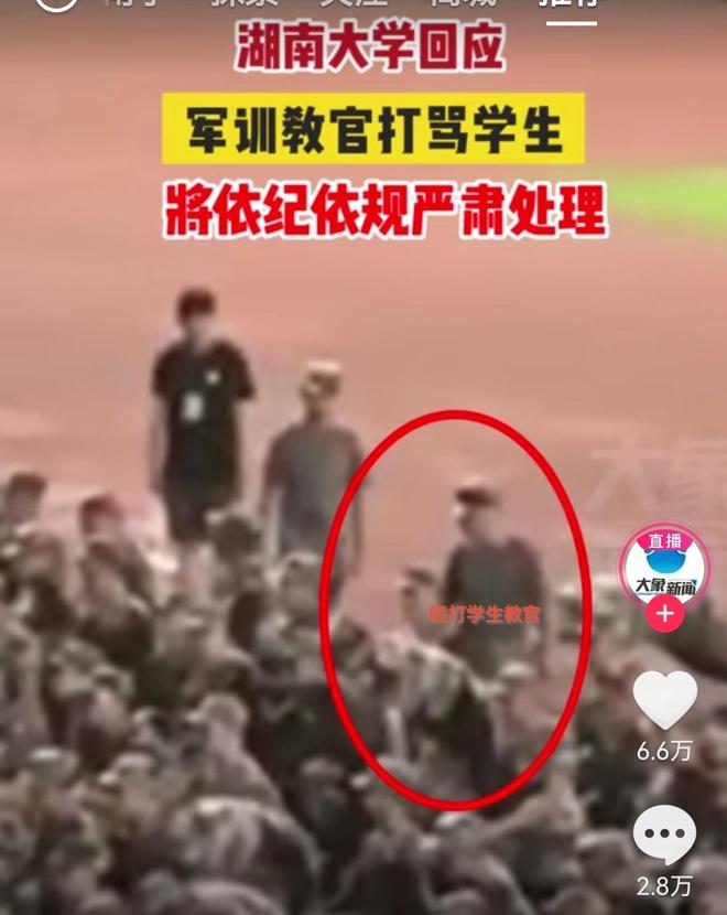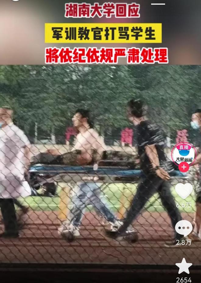 8月29日晚上,在湖南大学运动场上两名军训教官对参训学生打骂体罚,其中还对一名学生进行殴打。视频被曝光以后,网友们议论纷纷,认为教官军训管理得太过严格,大一新生不是退伍军人,不应按照这个标准训练学生,并且殴打他人的行为是不对的。
