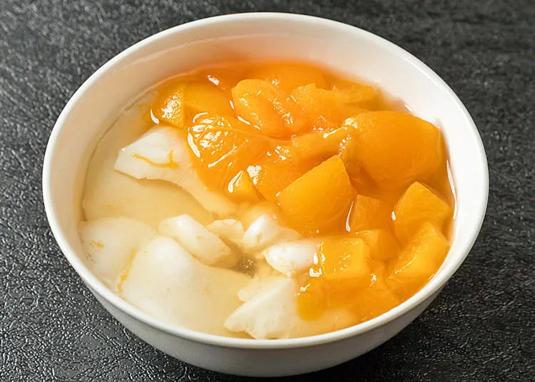 豆花在台灣可說是日常甜點了,而的確一般豆花會搭配的是紅豆或花生,比較少看到加水果的。不過筆者也發現某家台灣知名飲料店在日本的店舖竟然也有賣水果豆花!感覺是為了吸引日本人而推出的菜單(推眼鏡)。