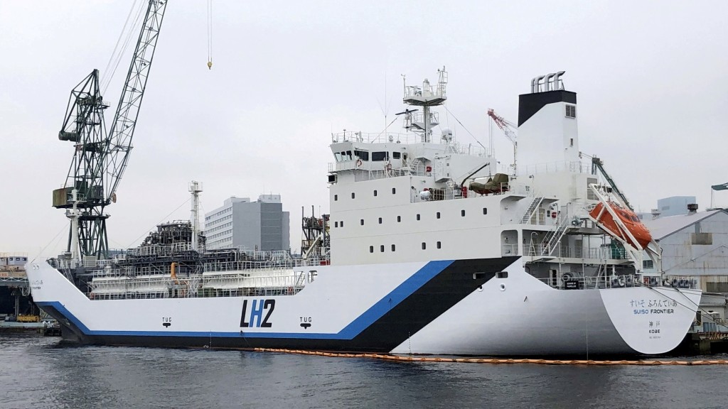 川崎重工建造的液化氫運輸船SUISO FRONTIER。 路透社