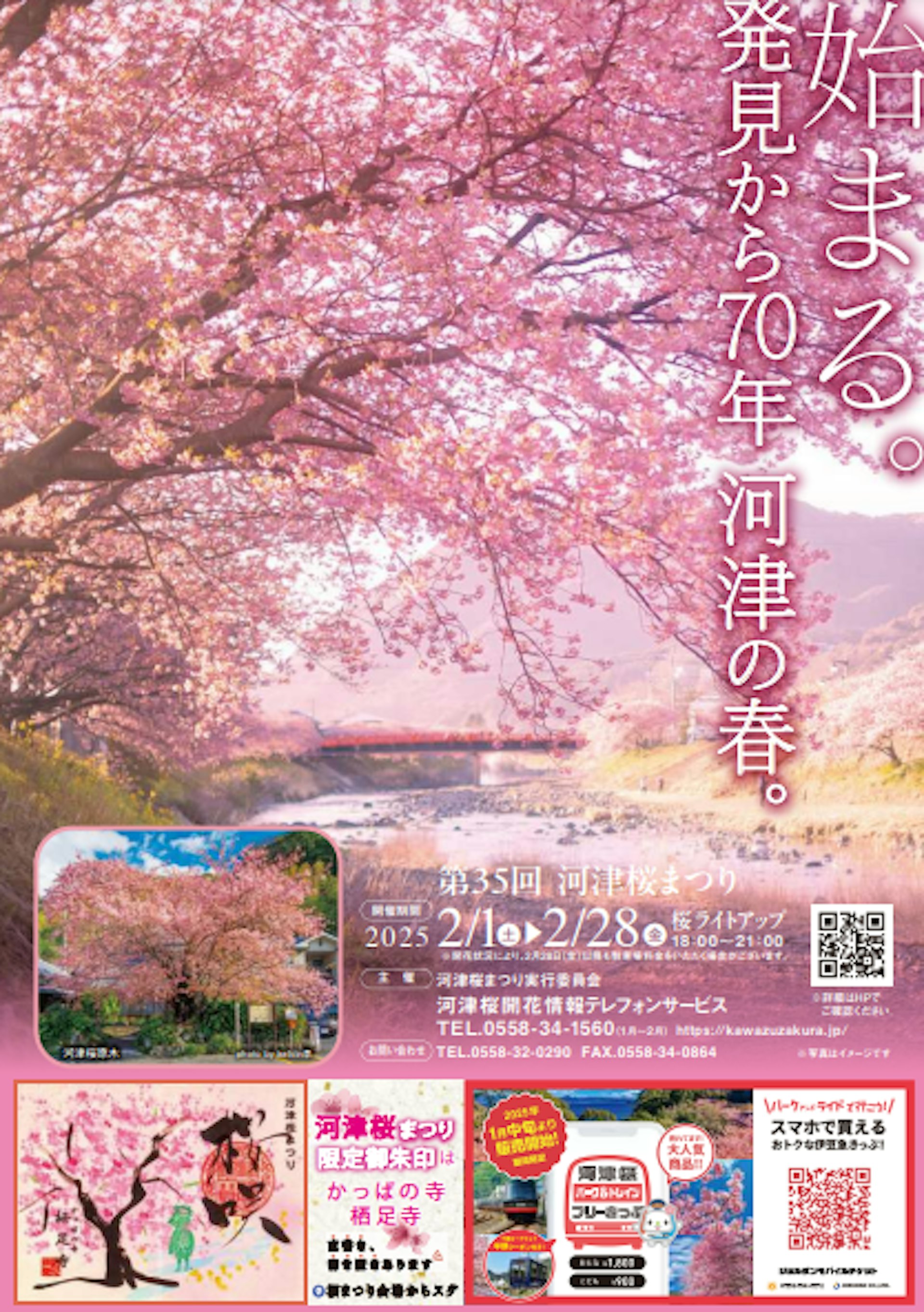 近日官方更宣佈河津櫻花節將於2月1日至2月28日舉行,屆時整條河川有逾8,000株河津櫻同時綻放,河岸旁亦將有小食、紀念品攤位及多場音樂演出,讓遊人邊觀賞櫻花,邊享受熱鬧氛圍!