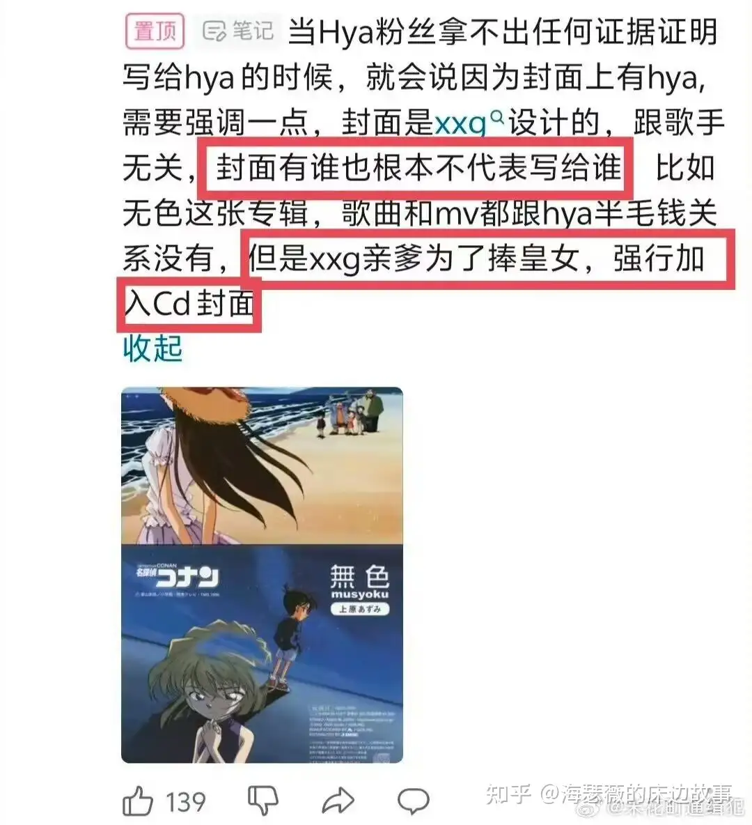 这就叫打蛇打七寸。 王沥川这种恰烂钱的作为新兰B站意见领袖,用滑稽可笑没啥根据的长视频刚刚抹黑说: “灰原哀一定是20岁朝上”,结果转头OP歌词就说 “十六岁的我没有爱,我知道你真正的爱在哪。” 这下王沥川忠孝难两全了。 忠,不能否认哀其实没有20岁,泼脏水去暗示这是在说哀的。 孝吧,全四小公开16岁的主要角色好像也就剩兰了,这可咋办啊。 第三个乐子,才到这个ED的封面和MV内容不符。 B站目前还不知道出处那个视频的评论区笔记有新兰极端粉发了这个,当时就收获了百赞,这意味着这并不代表个人极端看法,而是三位数的和他一样的人抱有这种看法。