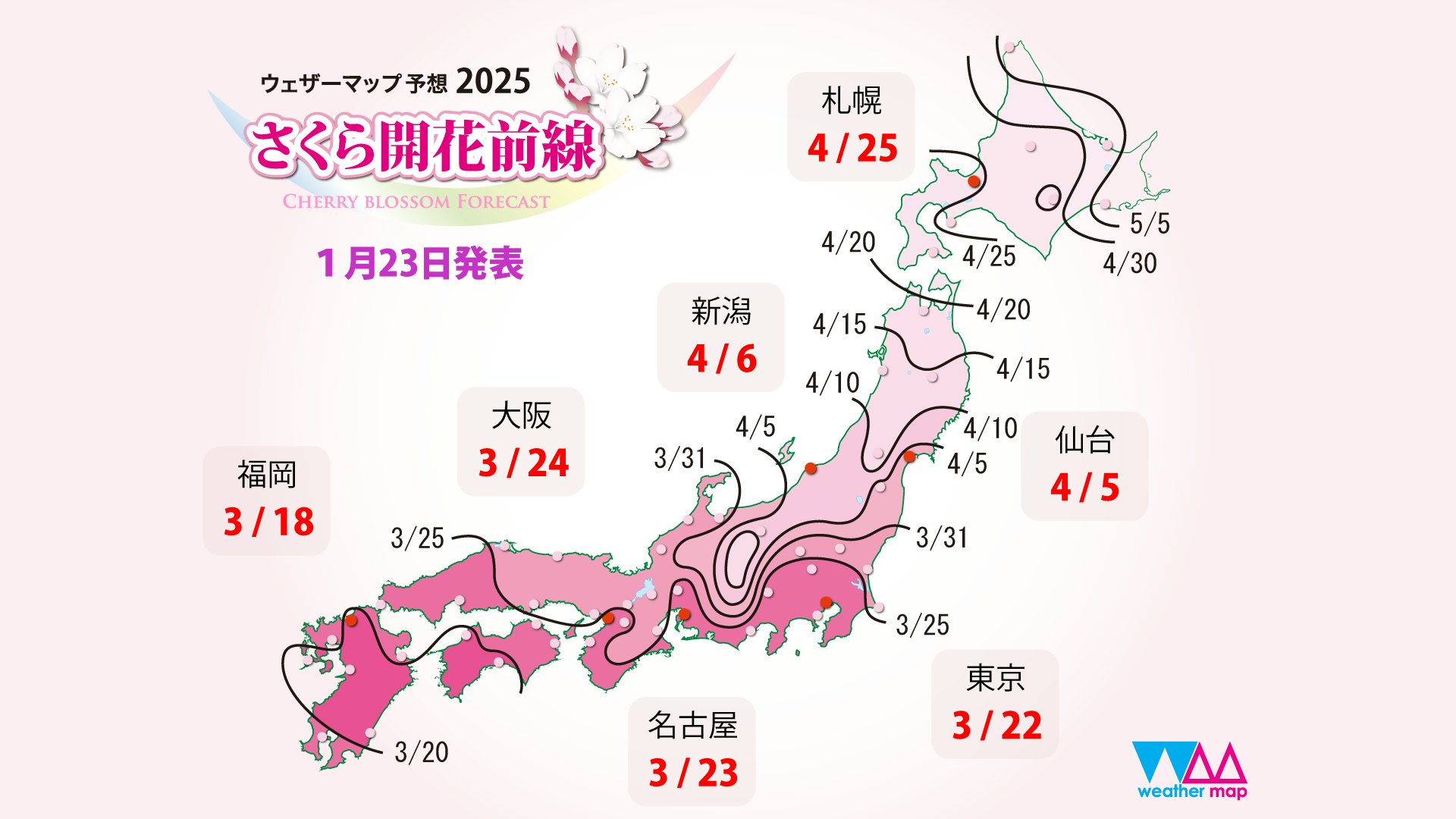 根據氣象公司Weather Map(ウェザーマップ),在東京,櫻花的初綻日定在3月22日,盛開日預計在3月30日。這段時間,城市裏的櫻花樹將綻放出粉嫩的花朵,吸引着成群的遊客和市民前來賞花、拍照,營造出一片浪漫的春日氛圍。