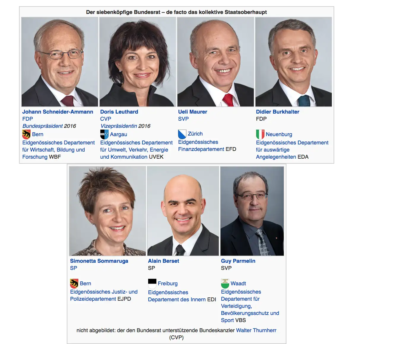 —— 在你们吐槽之前,其实这已经很不错了。比如传说中联邦的前身,结盟抗争哈布斯堡统治的三位老大哥 Uri, Schwyz以及Unterwalden 三个州加起来可都没出过一位呢。 当然我并不是来做联邦委员会的政治分析,而是来科普的。