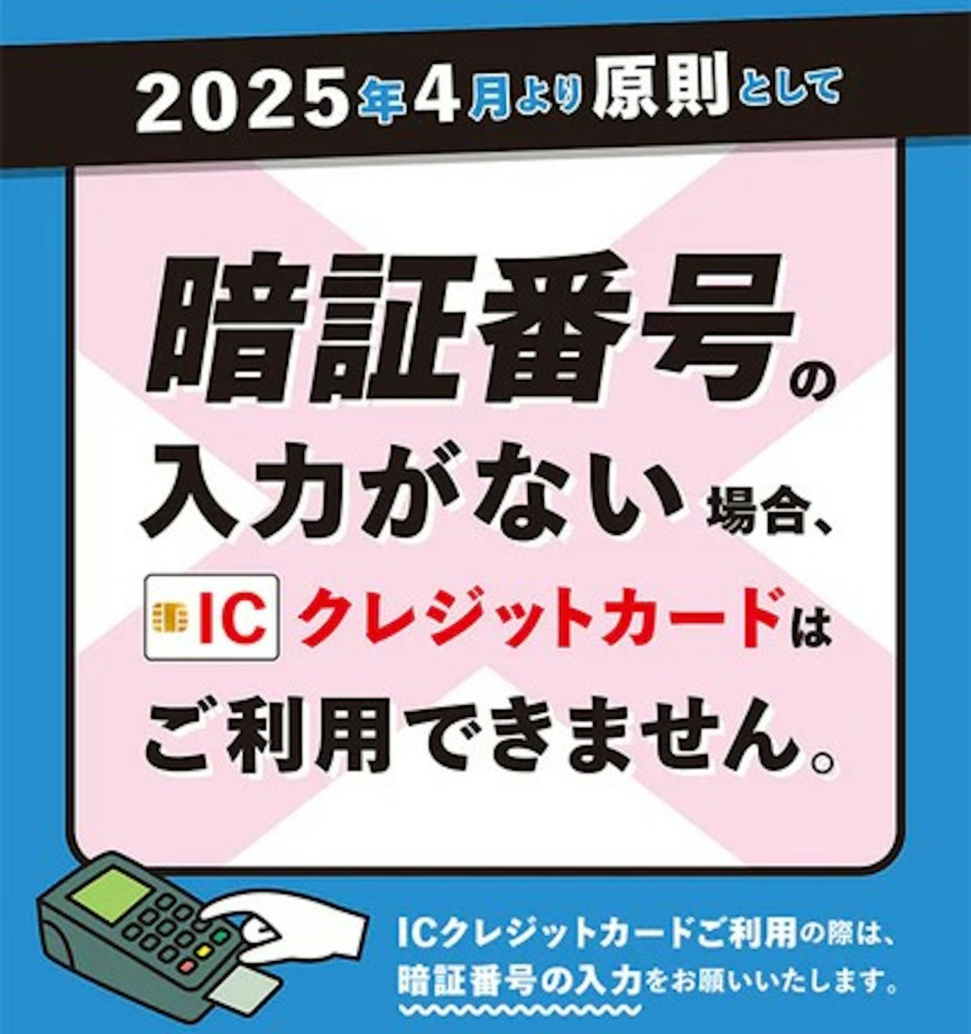 日本信用卡新制度 根據日本信用卡協會(JAC)公告,為了防止信用卡被盜用的問題,由2025年4月起,日本的IC讀卡機會取消「PIN碼跳過功能(PIN Bypass)」,往後在日本購物刷信用卡時,就必須輸入4位數的PIN碼作為驗證。由於香港發行的信用卡大部份都沒有PIN碼,因此這對港人而言或會相當困擾。