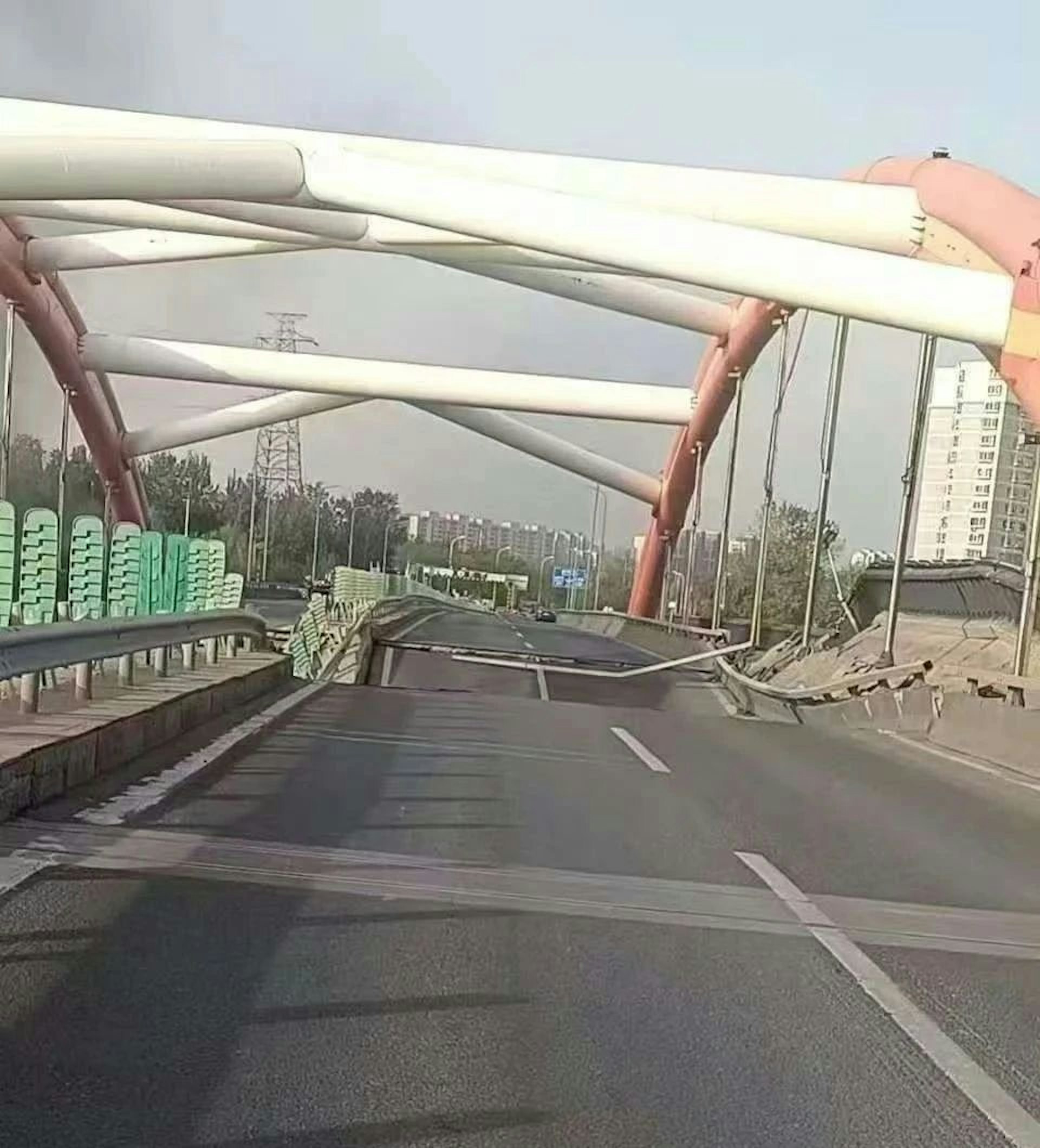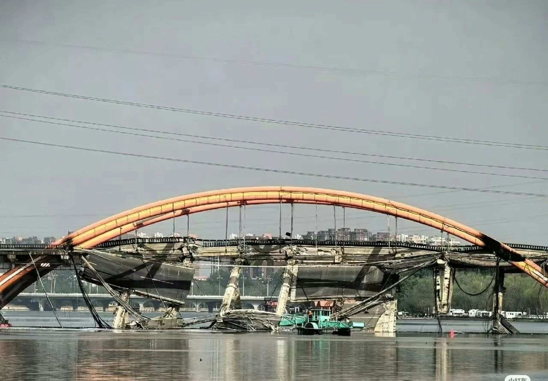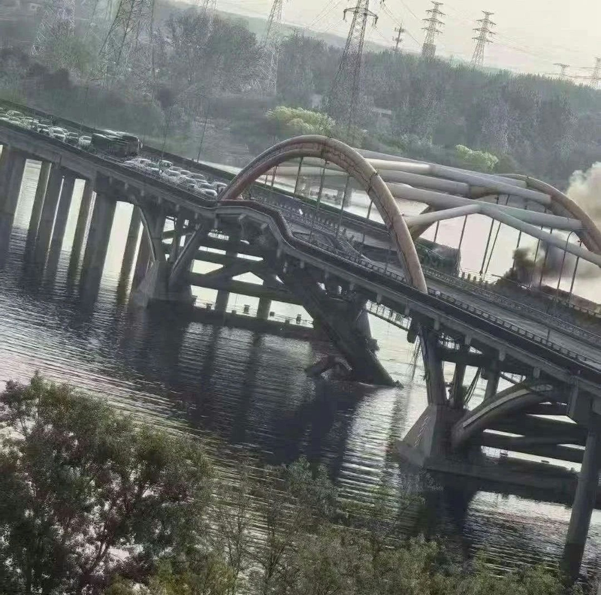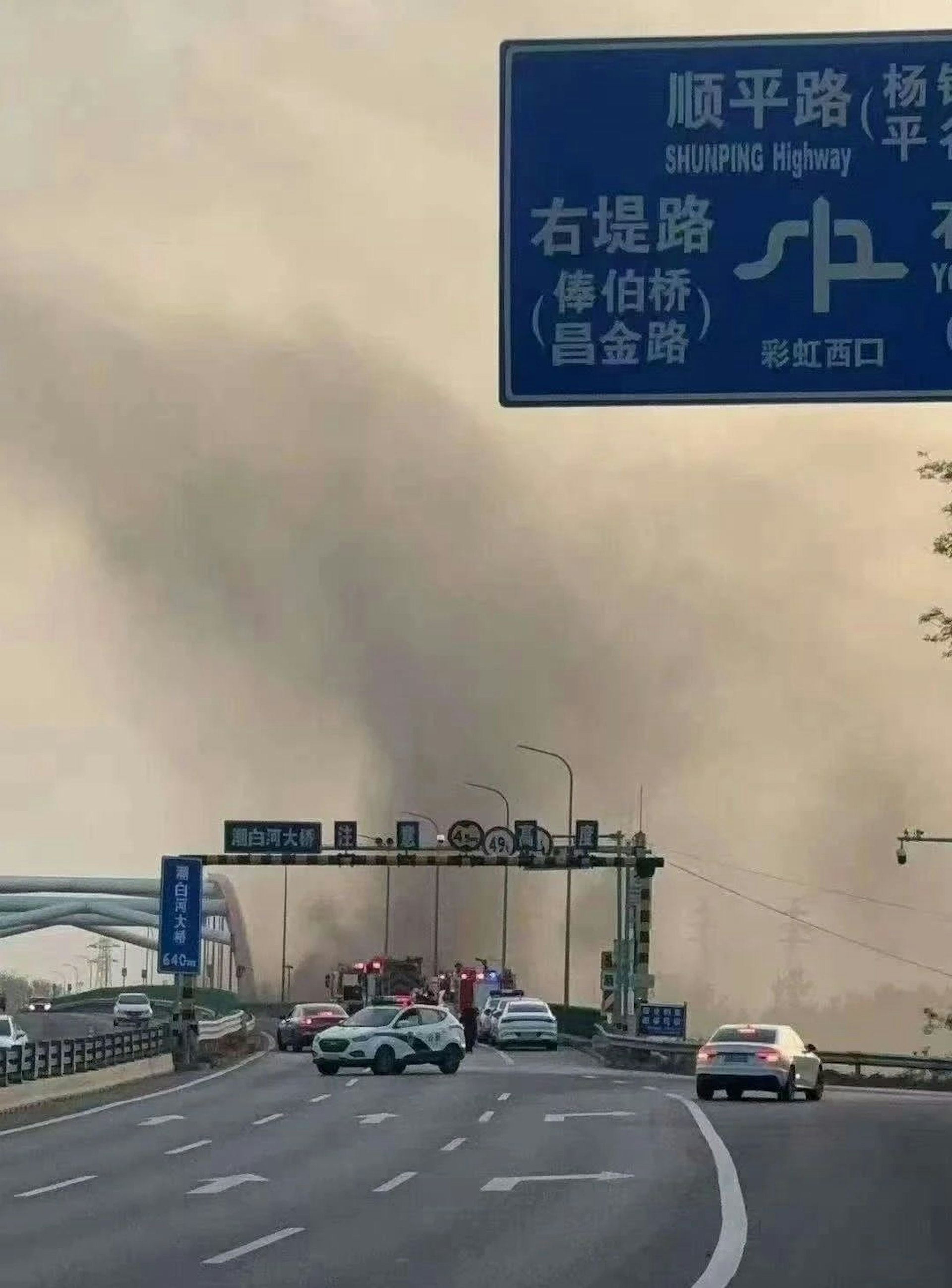 4月23日,有不少網民稱北京順義「彩虹橋」(潮白河大橋)突然坍塌,有網傳影片可見大橋附近冒出黑煙。有網民評論指,聽說是橋上的電纜起火導致事故。 |