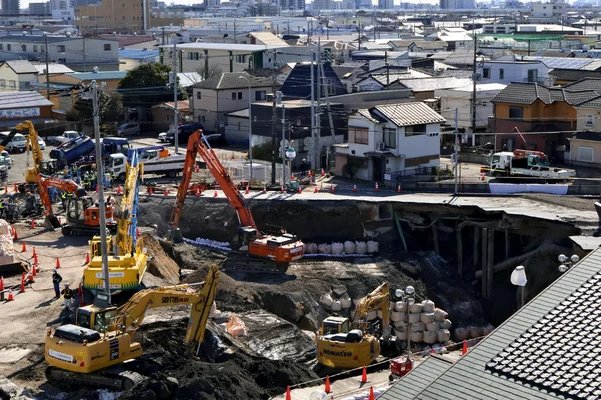 埼玉縣八潮市的道路今年1月陷落造成卡車掉落,周五尋獲失蹤司機遺體。路透社