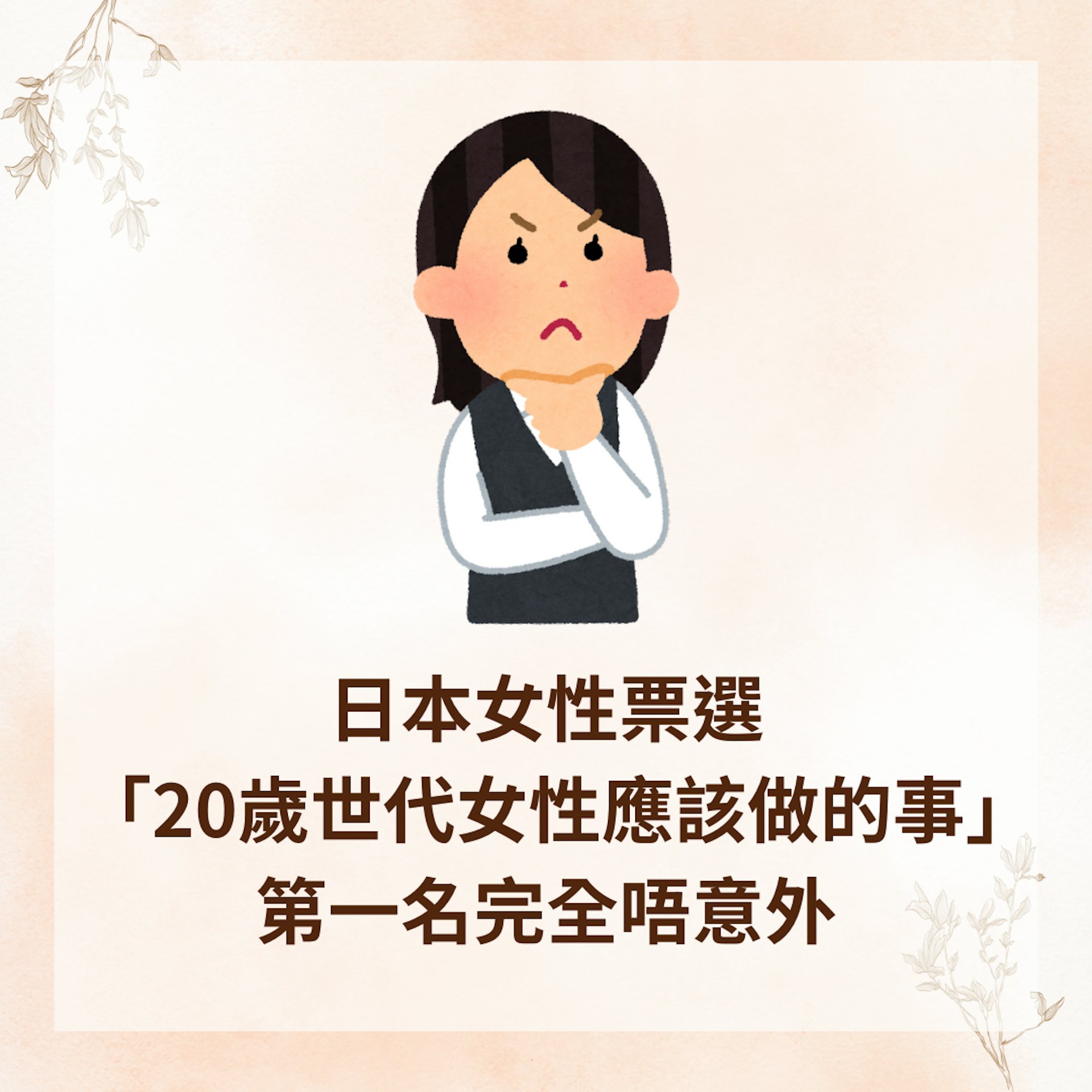 日本女性票選「20歲世代女性應該做的事」 第一名完全唔意外(01製圖)