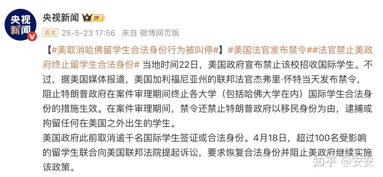 总的来说,这不是终点,是开始。这次法院的禁令,只是临时止血,不是彻底治愈。未来特朗普政府可能还会继续在移民和教育领域“搞动作”,大学和学生们只能边打官司边自保。 但从目前来看,大学阵营团结、司法系统尚存理性、社会舆论也支持教育自由——所以这场战斗还远没结束,但至少,哈佛和国际学生,赢了一回合。 我是 @安安,一名擅长教育领域的知乎答主,如果我的回答对你有所帮助,请点个喜欢、收藏吧,你的点赞、收藏和关注是对我最大的支持!感谢~
