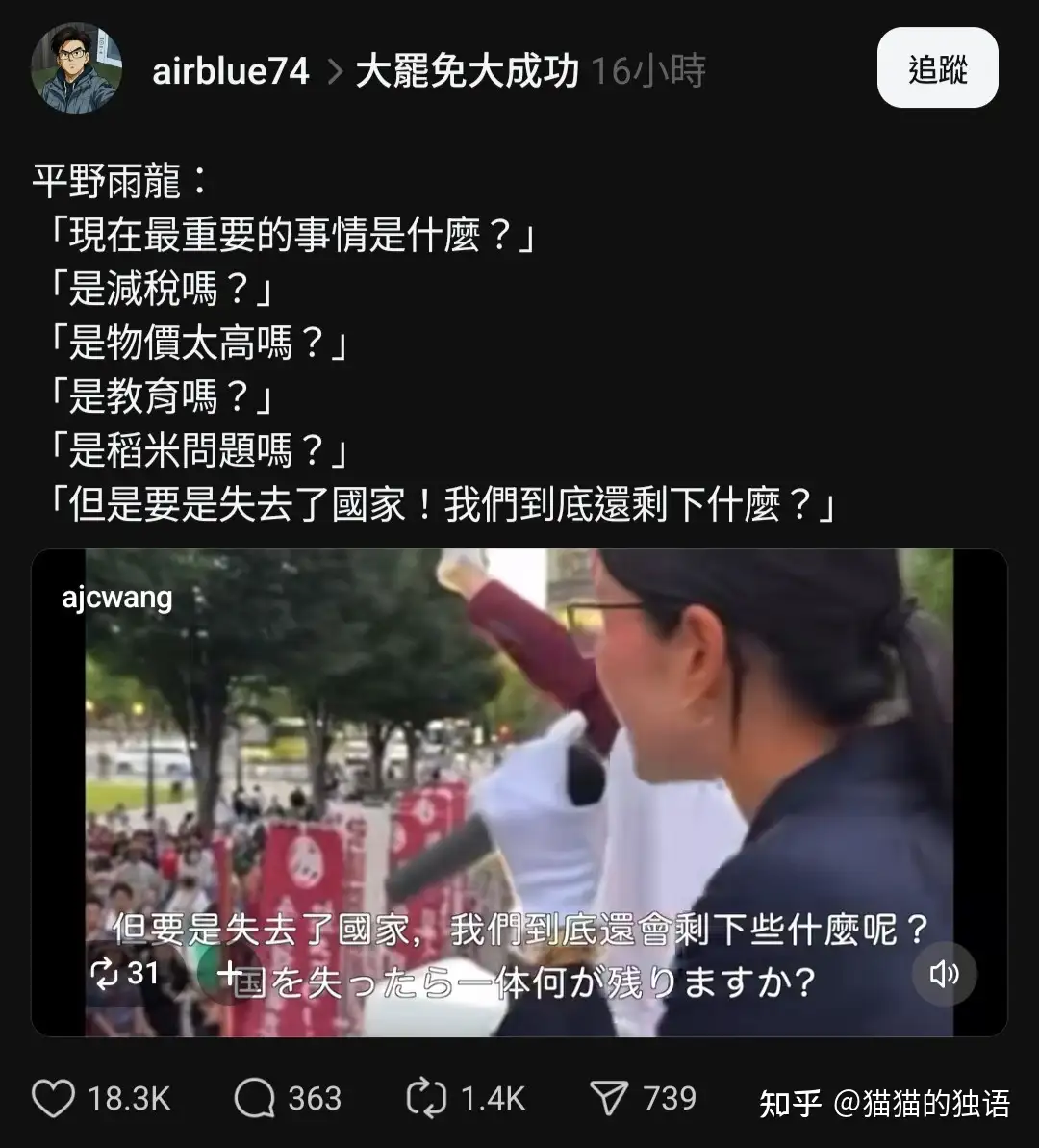 最後我想附上兩篇日本人的串文
