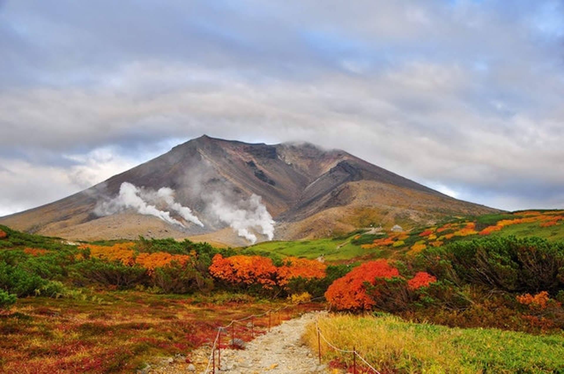 賞楓地點推薦【1】旭岳 北海道旭岳是北海道最高峰,海拔2291米,從旭岳溫泉搭乘纜車到山頂,沿途攀升可將葉山林盡收眼底。