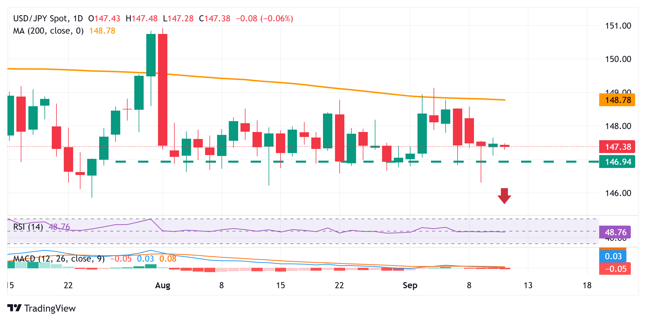 日本央行(JPY)在週四進入歐洲時段時吸引了一些賣盤,並在最後一個小時觸及對廣泛走強的美元(USD)的三天低點。日本首相石破茂辭職後,政治不確定性籠罩日本,這可能暫時阻礙日本央行(BoJ)正常化貨幣政策。加上普遍積極的風險情緒,削弱了避險日圓,推動美元/日圓貨幣對接近147.75的阻力位。 與此同時,日本8月份生產者價格指數(PPI)略有上升,加上第二季度國內生產總值(GDP)數據的上調、家庭支出和實際工資的增長,支持了日本央行即將加息的理由。相反,交易者已在定價美國聯邦儲備委員會(Fed)更激進的政策寬鬆的可能性。這反過來可能限制美元的進一步升值,並使低收益的日圓受益,令美元/日圓多頭在美國消費者通脹數據公布前保持謹慎。