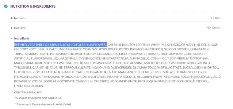 而且从配料表里来看,排名第一的就是由棕榈油、豆油和高油酸葵花籽油组成的植物油,根本就不是“自媒体生酮专家”所说的动物脂肪。