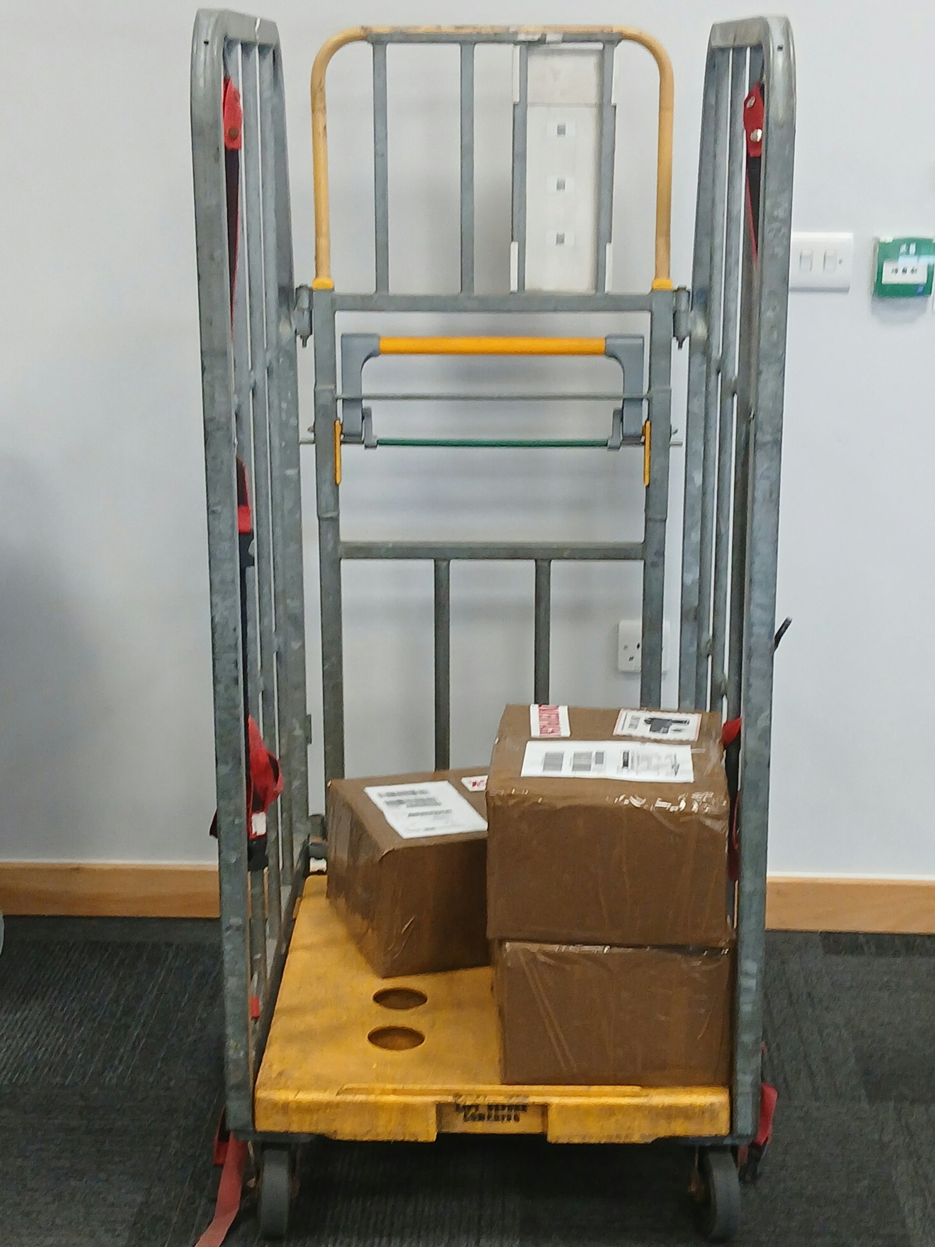 英國警方2024年12月在倫敦希思路機場附近的一個倉庫發現了一個裝有約一千部iPhone、準備運往香港的箱子。圖為倫敦警方上傳涉案照片。(倫敦警察廳)