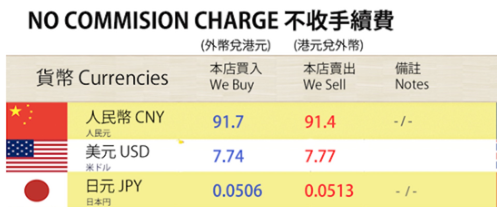 溫馨提示:找換店會有「買入」和「賣出」,假如想把港幣兌換成日圓去旅行,便要留意找換店「賣出」價格。假如旅行結束想把日圓兌回港幣,就要留意找換店「買入」價格。 |