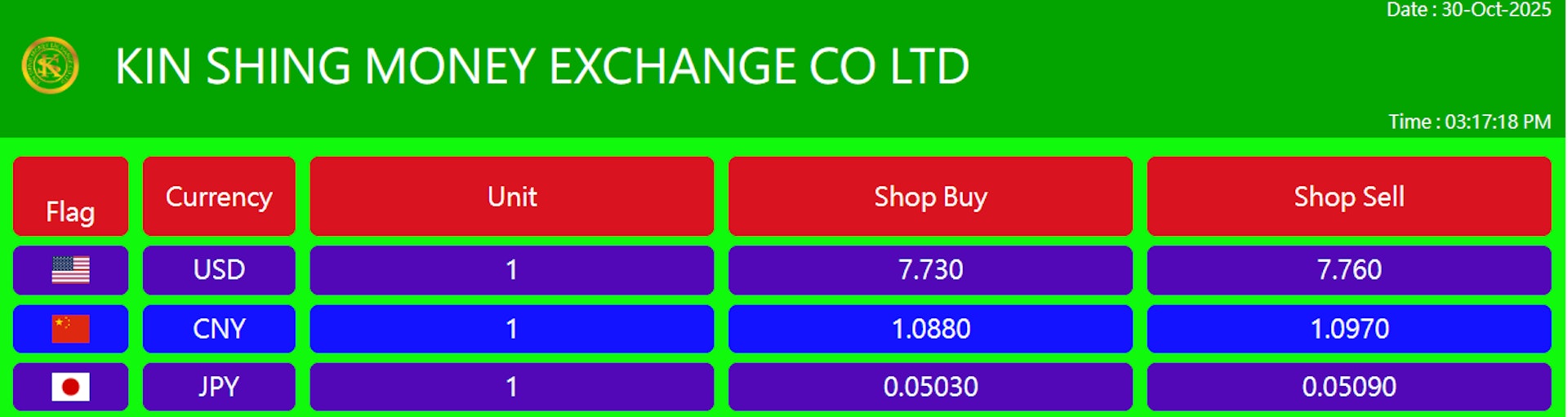 堅成10月30日即時匯率。(圖片來源:堅成找換有限公司)             |