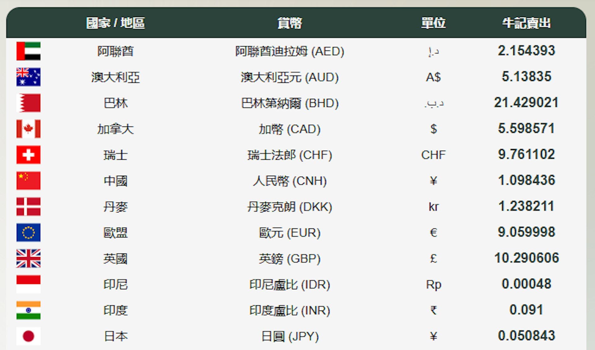 牛記10月30日即時匯率。(圖片來源:牛記找換有限公司)             |