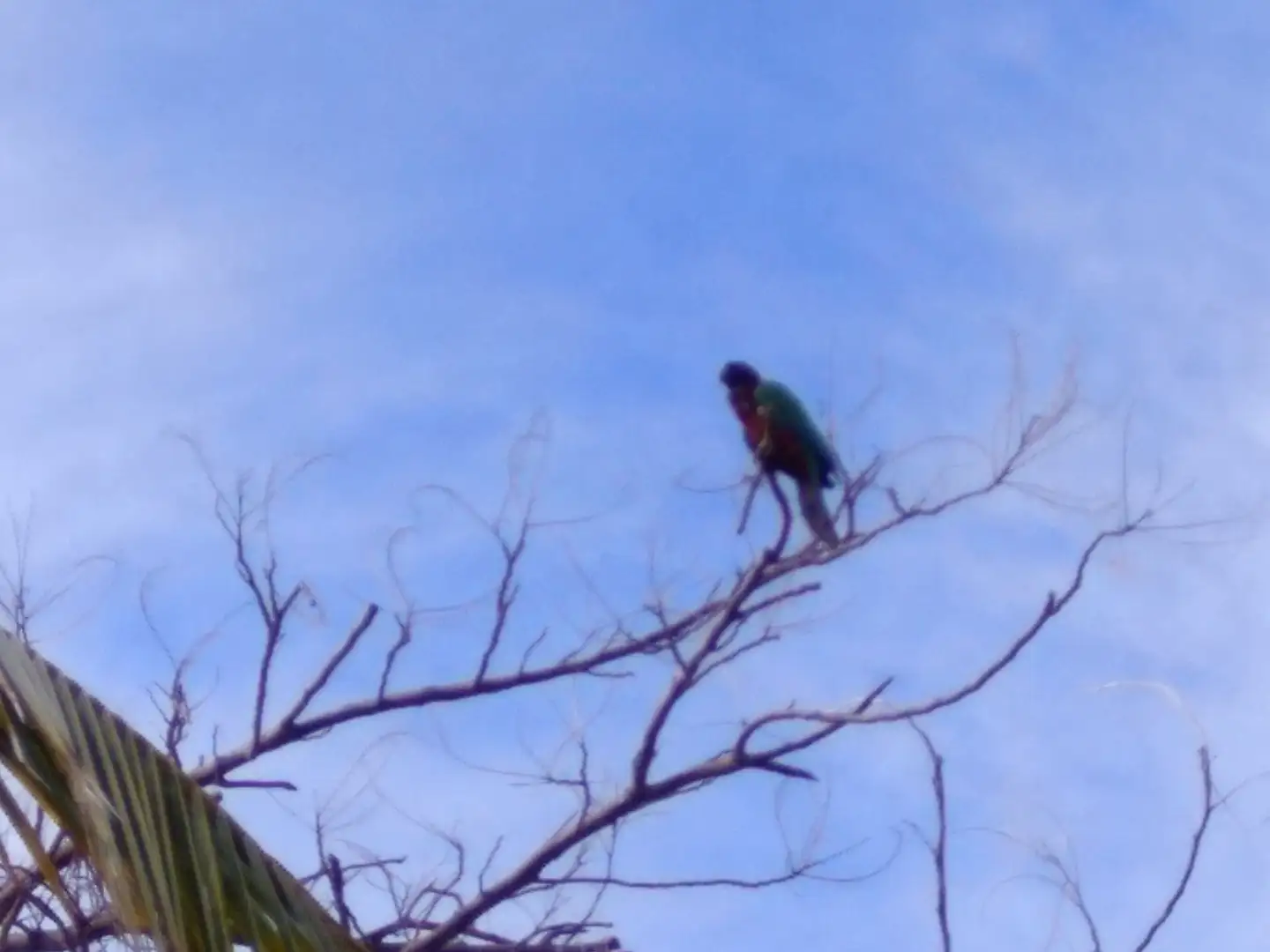 上面有非常漂亮的鹦鹉和好多叫不上名字的鸟,
