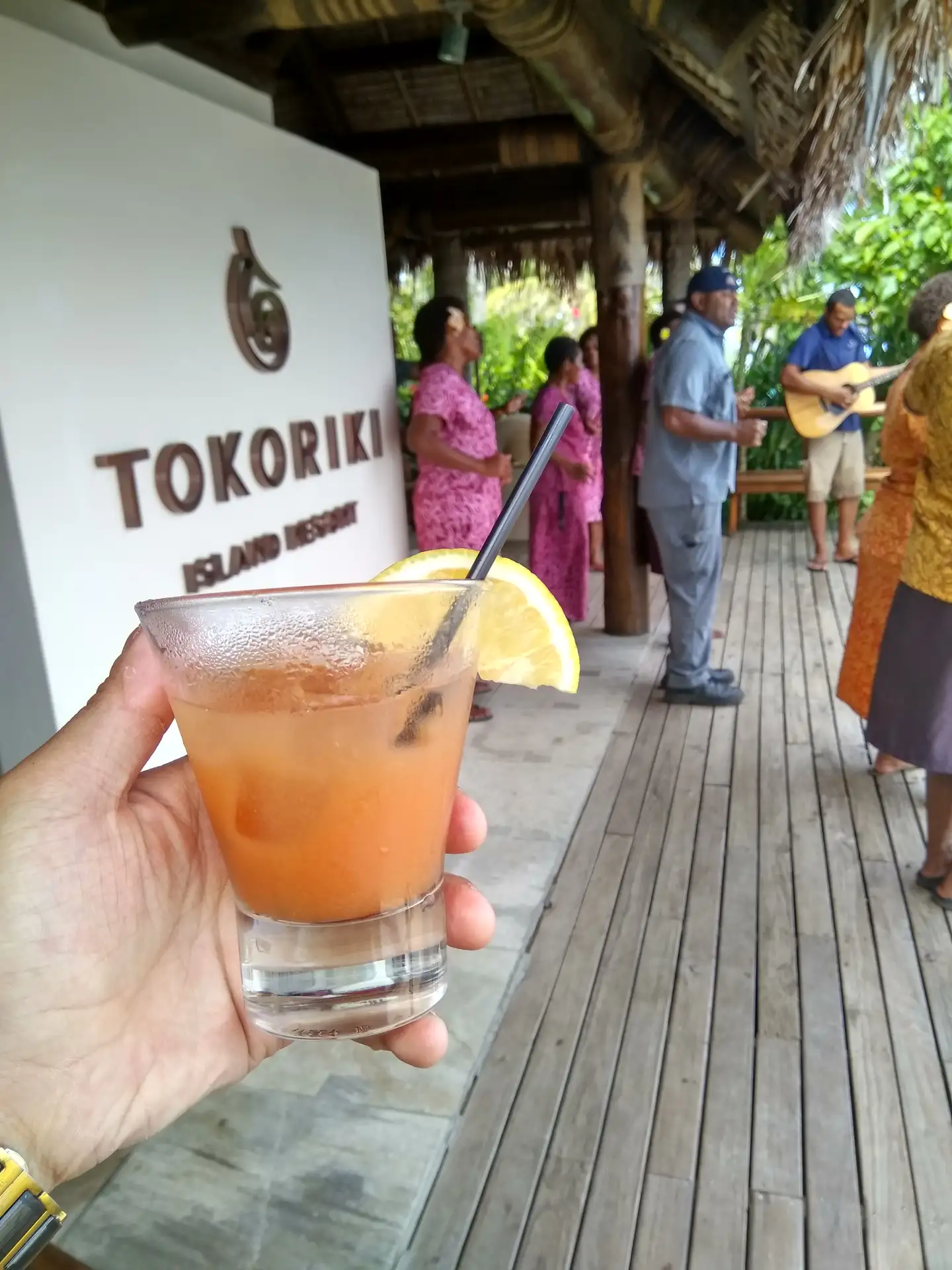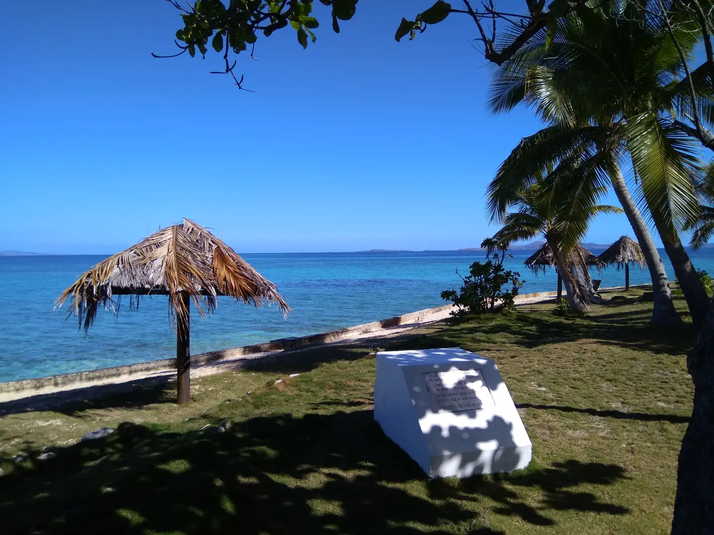 然而一个小黑告诉我带不出斐济,除非绑在项链上然后放在包里托运,恰好我们报名了去拜访当地村庄的行程,去当地拜访,不能带帽子,太阳镜可以带,不要穿露肩的服装,女孩子要穿盖住膝盖的衣服。村庄就在tokoriki对面的岛上,一个很贫穷的地方,当地的酋长接待的我们,他似乎是一位白内障患者,请我们喝kava酒,一种当地的胡椒研磨的饮料,体验类似姜汤,饮用后明显的感觉温胃、微微发汗。