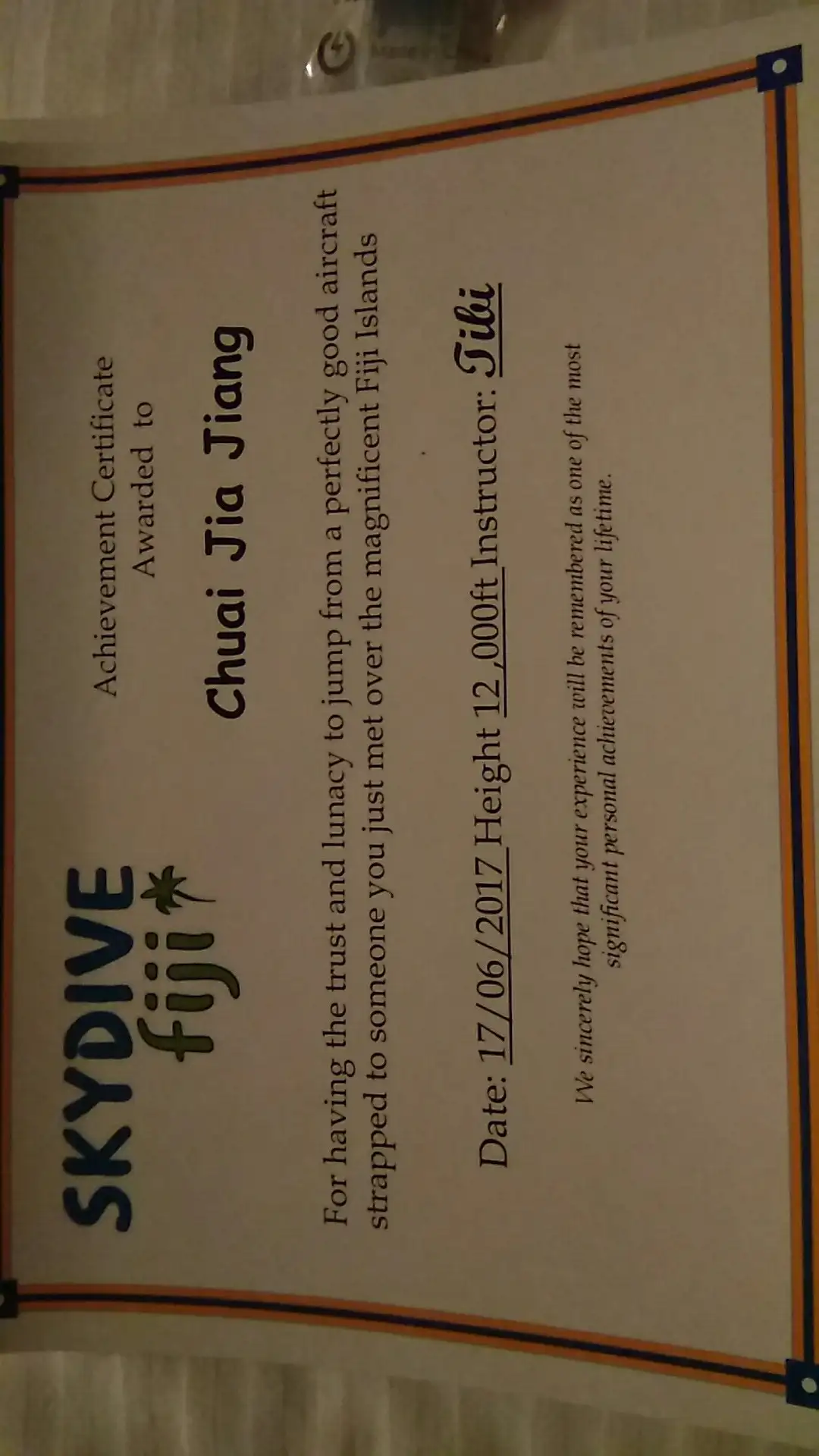 摄像和照片他们会放在一个U盘里,我是上午10点多跳的,晚上7点前他们会制作好视频,再把U盘送到酒店大堂。还有两张“证书”