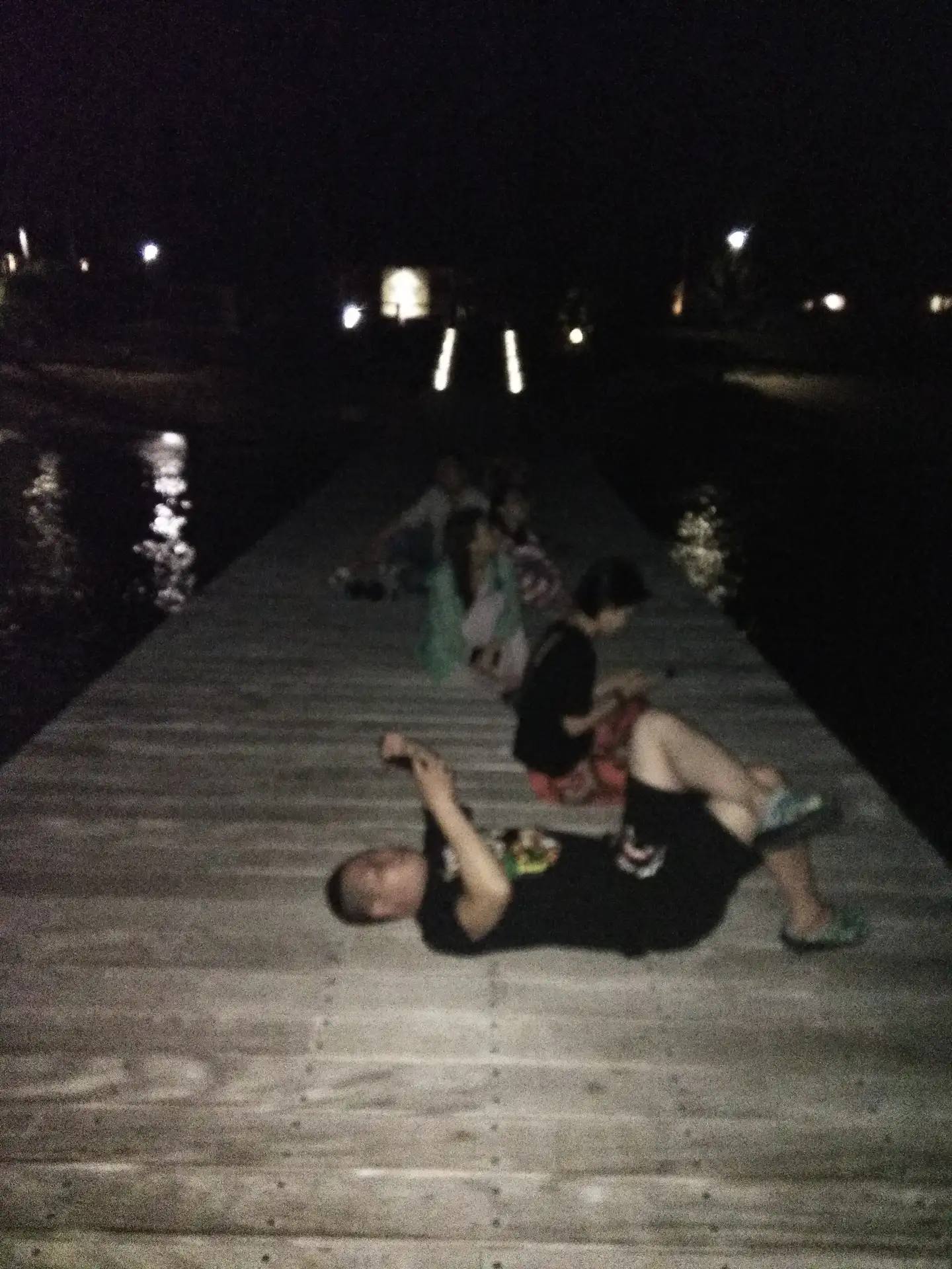 当晚很搞笑,我和媳妇只住2天,所以没有蜜月香槟(满3天才有),台州的那对夫妇是有的,泰州的小伙子因为没做好攻略,给了人家硬币当小费,结果人家生气了没给他香槟。(在斐济以硬币作为小费是表示对服务不满意。)所以晚上我就邀他们来我屋泳池边的平台上一起喝,酒吧那边的国际螃蟹大赛(据说有赌博性质)我们都没参加,6个人边喝边聊(中国人又聚堆了),大把的Fiji time也稍显不够,转眼到了夜里11点离开的时候我抬头看到一团雾蒙蒙,怀疑是银河,用手机APP对了一下果然是,于是我们跑到了酒店的直升机停机坪,当空的是北半球完全看不到的南三角座、南十字座、半人马座、巨蟹座等。斐济的银河真的超赞,看越久就越多越亮,耐心的话还能看到流星。