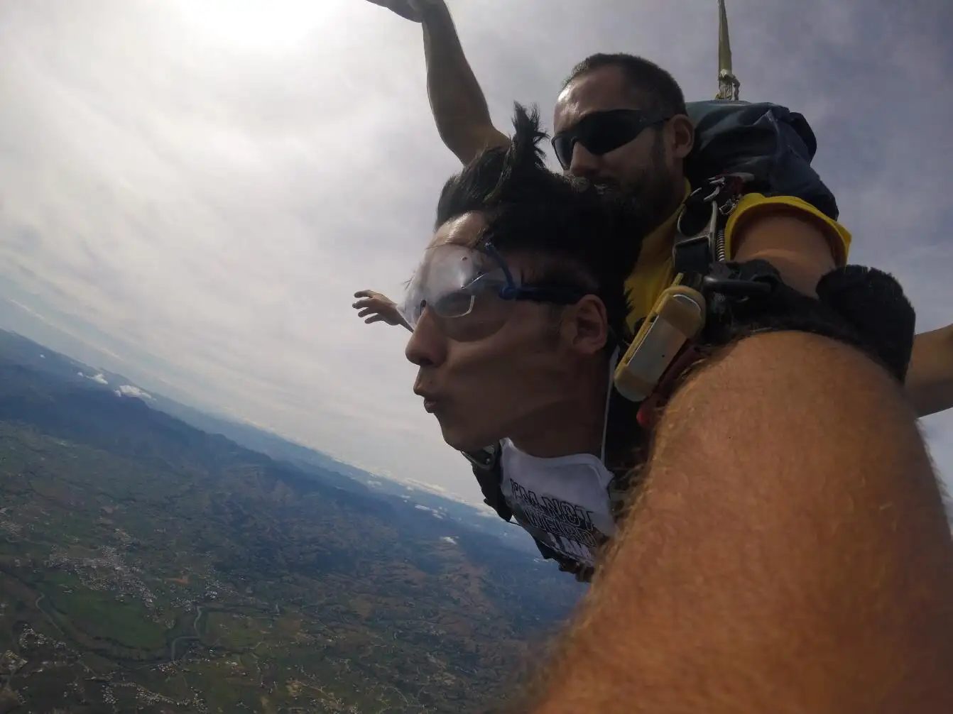 自由落体非常过瘾,但是耳朵会有些许的疼痛,不过开伞后就会减轻,落地后疼痛基本消失。我这次是彻底的被吹成了迎风的沙皮狗。