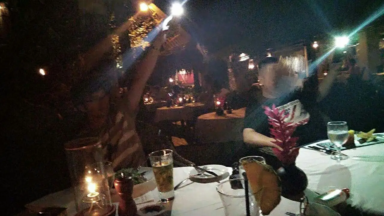 渤海楼下马路同侧不远有一家“jack's”绿色牌子,透明橱窗里挂了几件印度衣服,那个位置可以等到回程的WESTBUS(黄色小中巴)。斐济的这个公交车运营时间好像是到晚上11点半,比国内很多城市的公交还要晚。回到westin,他们在酒店门口的池子里点起了小火炬,也蛮漂亮,然后我俩去海边的小酒吧,好像叫Kitchen grill,随便点了两杯不知名的鸡尾酒,听听歌,吹吹风。