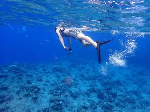 之所以着急解决午餐,是因为我俩订了下午的水肺体验潜水,一位黑人教练在那个小泳池(海水池,咸)教了我们半个小时,如果你表现好就可以出海体验了。报名水肺潜水登记的时候一定要表明自己身体没问题,这个岛还是非常严的,第二天江苏泰州的一个小伙子就因为一道刀疤被拒绝潜水了,教练说一定要他的医生拿来纸质的证明文件才可以。