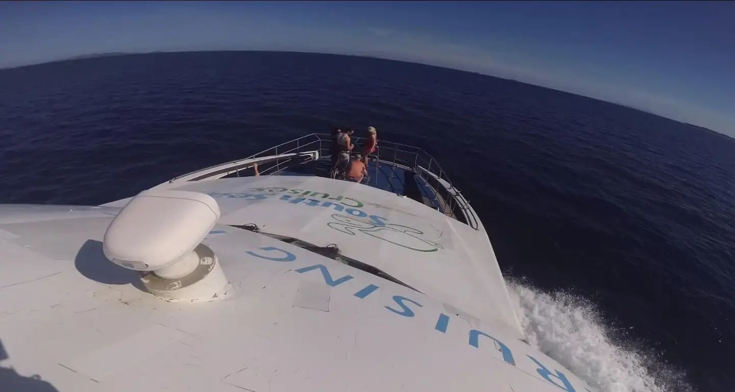 第三天一早,我们收拾了行李,8点20分在酒店门口等码头的车来接人,(车又来晚了……)票是之前在酒店定的,酒店会给你一个收款单,到码头之后排队换船票,做渡轮出海。