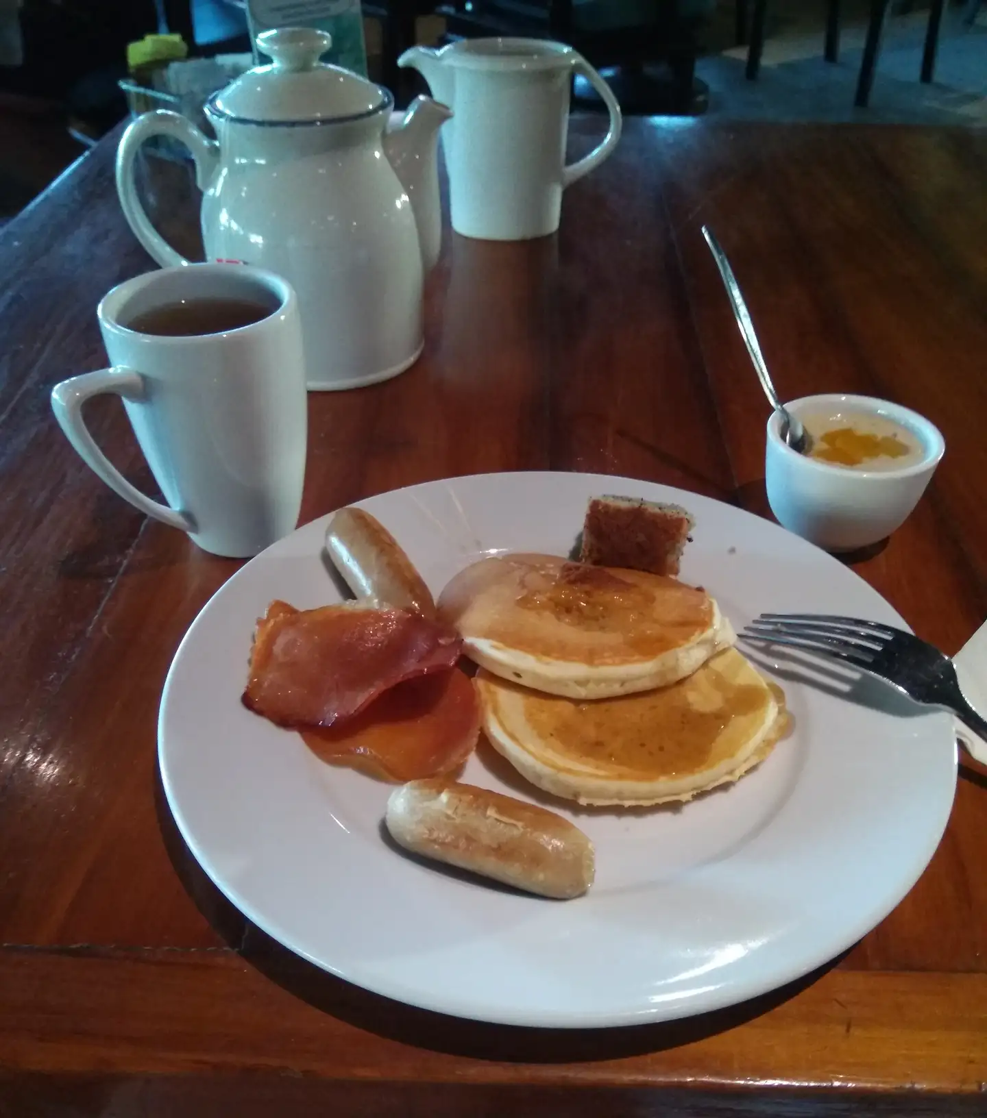房间内还有露天淋浴。在房间准备好之前我俩急急的吃了午餐,还认识了从浙江台州来的一对儿夫妇,他俩英语不是特别棒,我帮着一起办的入住。