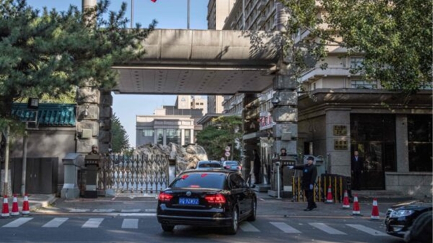 圖為北京京西賓館出入口。(NICOLAS ASFOURI/AFP via Getty Images)