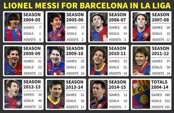 信息图:莱奥内尔梅西职业生涯至今在俱乐部每个赛季的进球和助攻 [via @MessiStats] ![]() |
