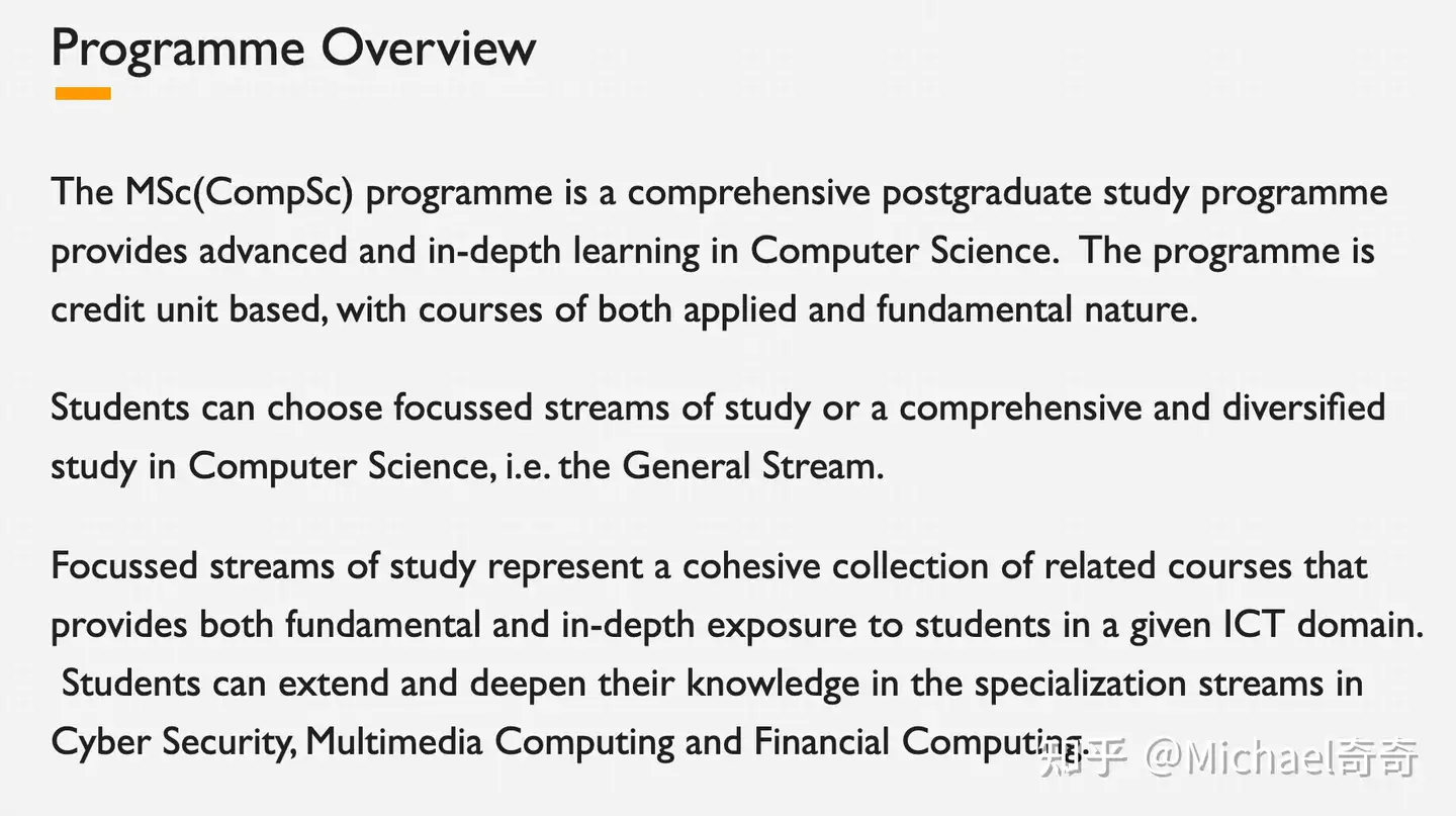 研究方向设置灵活,共有4个研究方向,分别为网络安全、多媒体计算、金融计算和General Stream,可以满足不同学生的不同需求。课程设置全面,包括信息安全、数据挖掘、区块链、机器学习、云计算、人工智能、游戏设计、智能手机软件开发、计算机网络、模式识别等几乎所有计算机方向课程。