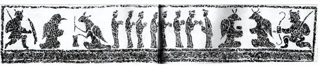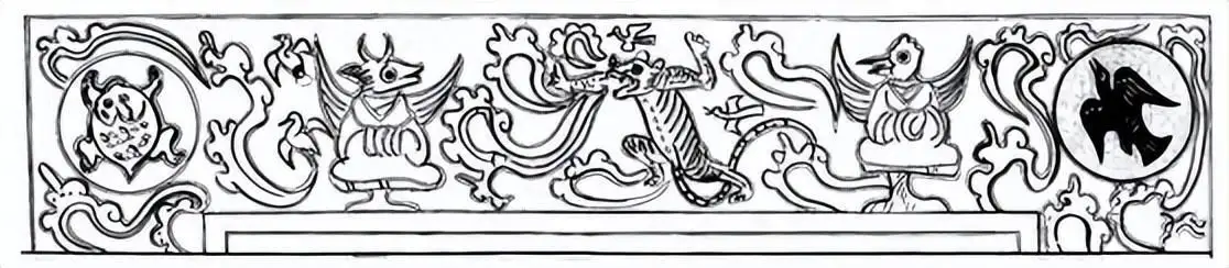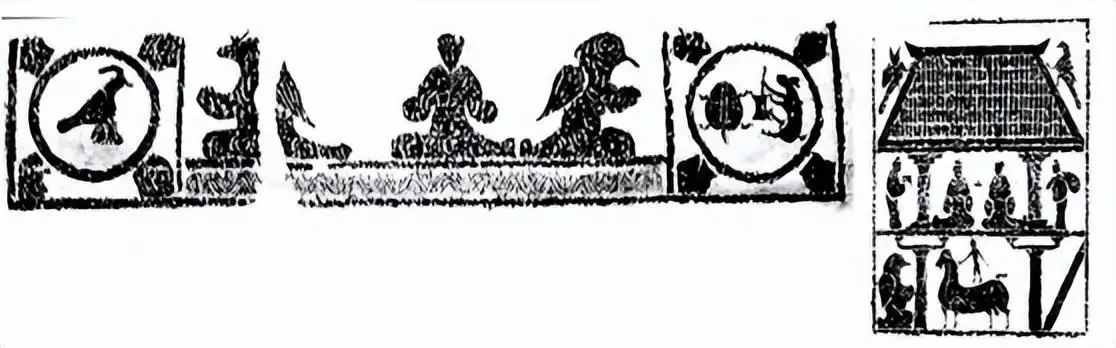 东汉墓 M18 的六楣画像石摹本(其中右边的鸟人是太上老君)