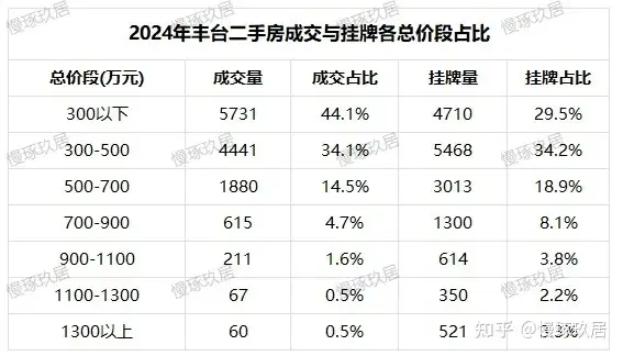 从总价占比来看,500万以下是丰台二手房的成交主力。500-700万的价格流通性稍微弱一些。